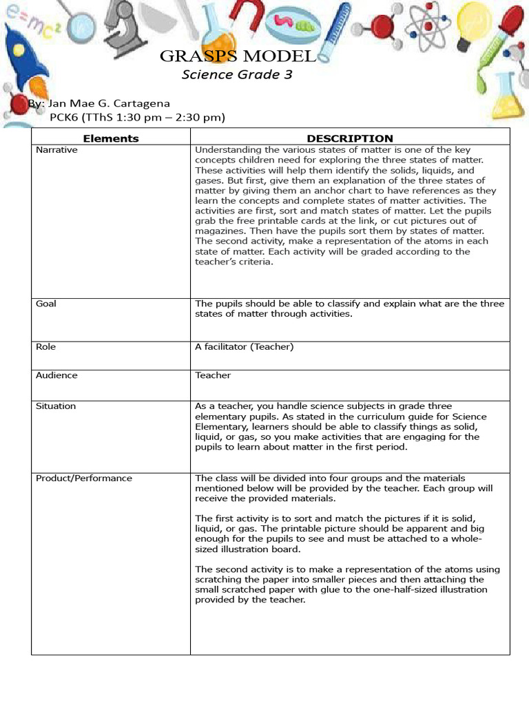 EDUC 6 Week 5 Designing Performance Assessment Using GRASPS Model | PDF ...