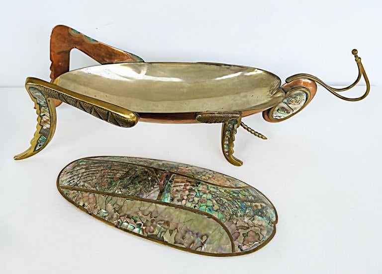 60s Mexican Mid-Century Abalone Shell Grasshopper Tray with Lid, Mixed ...