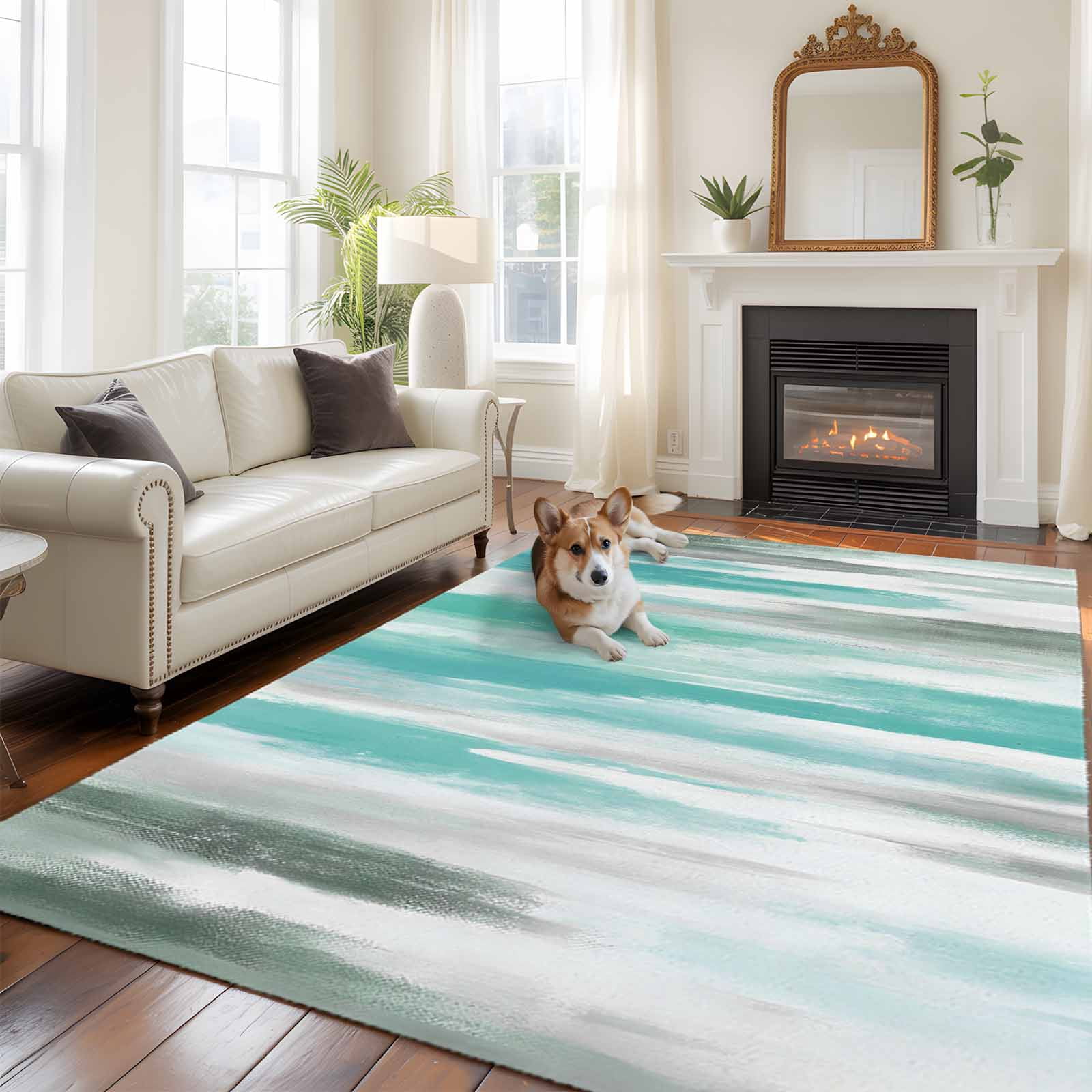 6'x9' Area Rugs, Turquoise Gray Indoor Outdoor Area Rug for Living Room ...