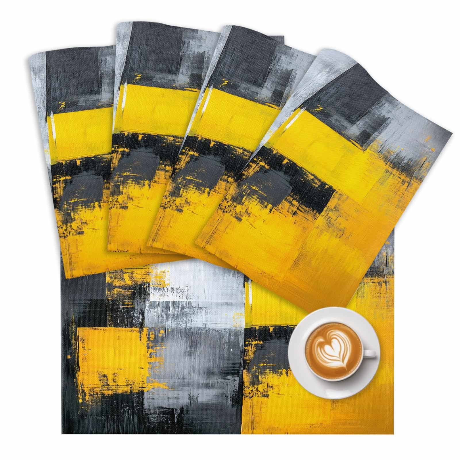 Abstract Color Block Placemats Set of 2 Yellow Block Gradient Gray ...
