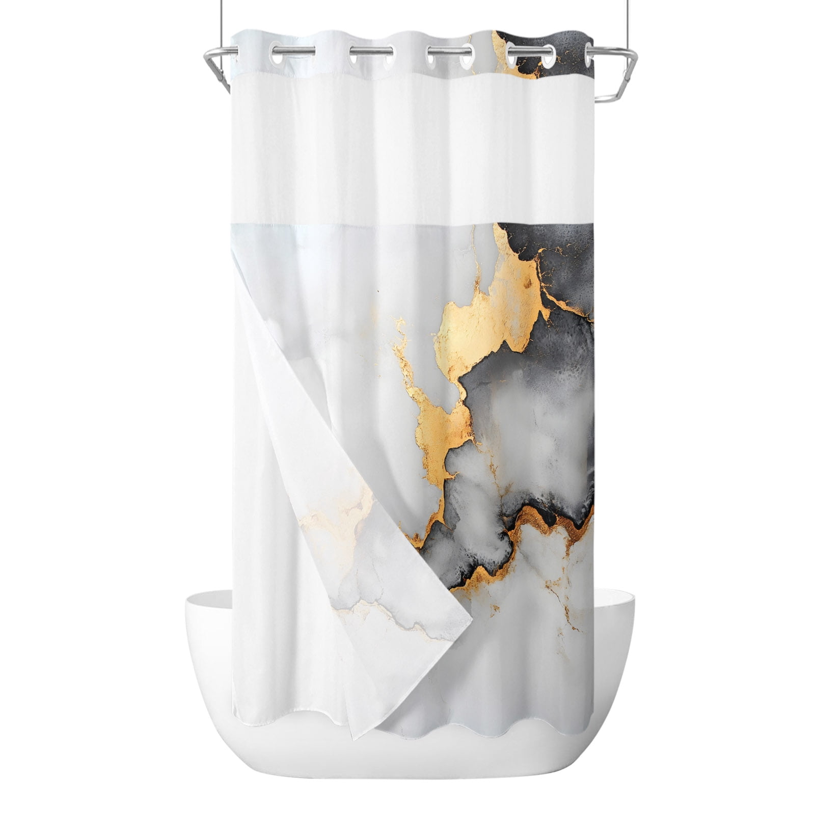 Abstract Marble Texture No Hook Shower Curtain with Snap in Liner, Grey ...