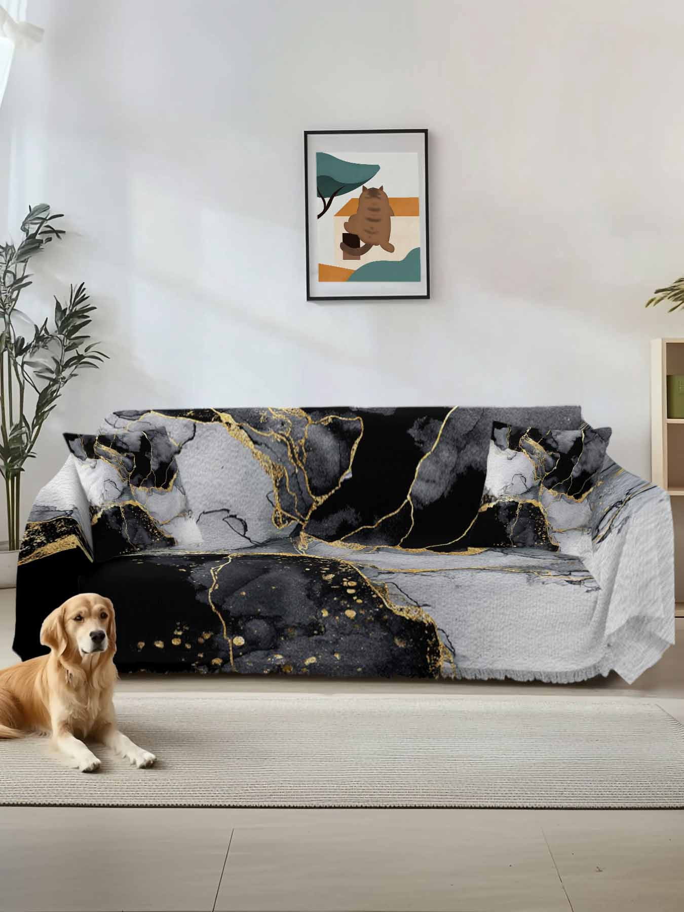 Black Grey Marble Couch Cover, Modern Gradient Abstract Aesthetic ...