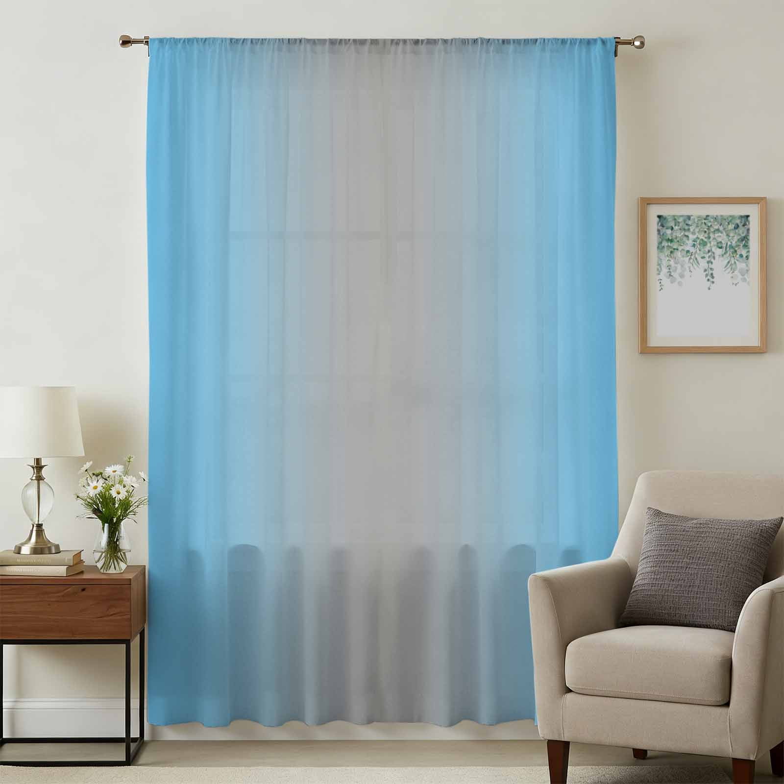 Blue Grey Ombre Sheer Curtains 72 Inches Long, Modern Gradient Abstract ...
