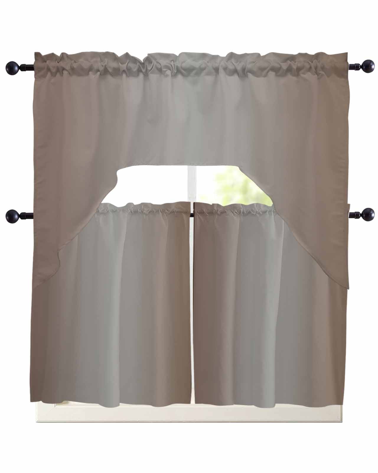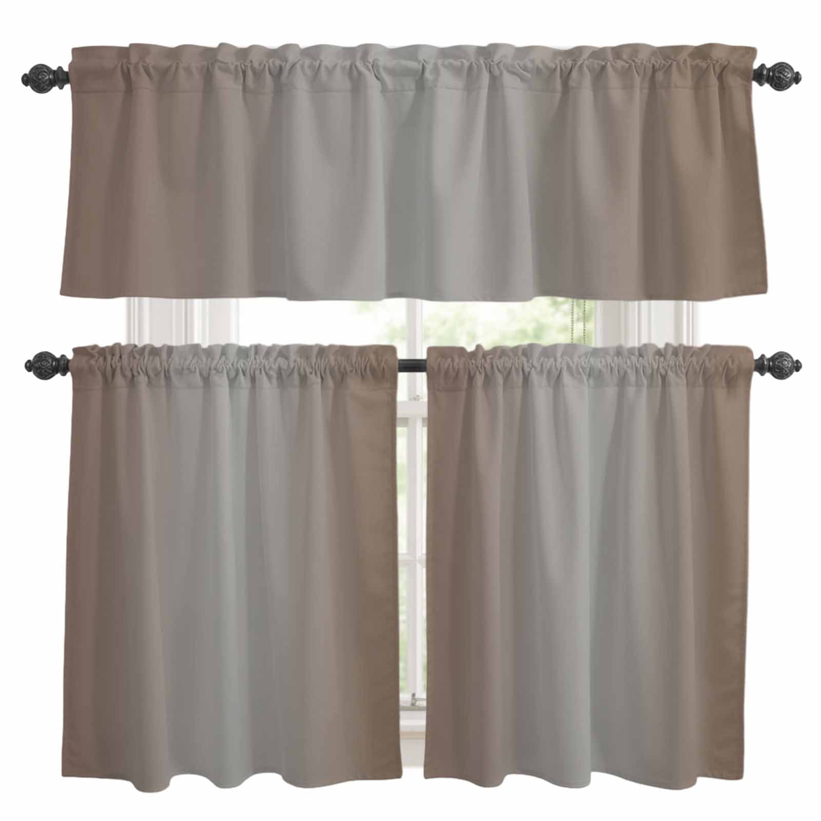 Brown Gray Ombre Kitchen Curtains Set for Windows 3 Piece Cafe Curtains ...