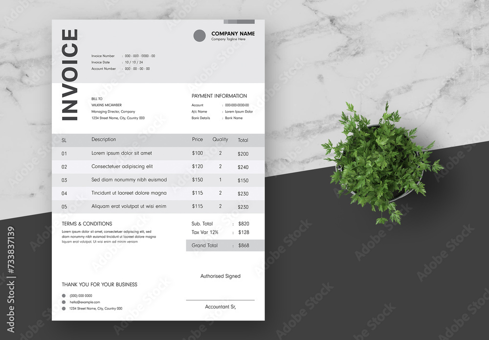 White and Grey Modern Invoice Stock Template | Adobe Stock