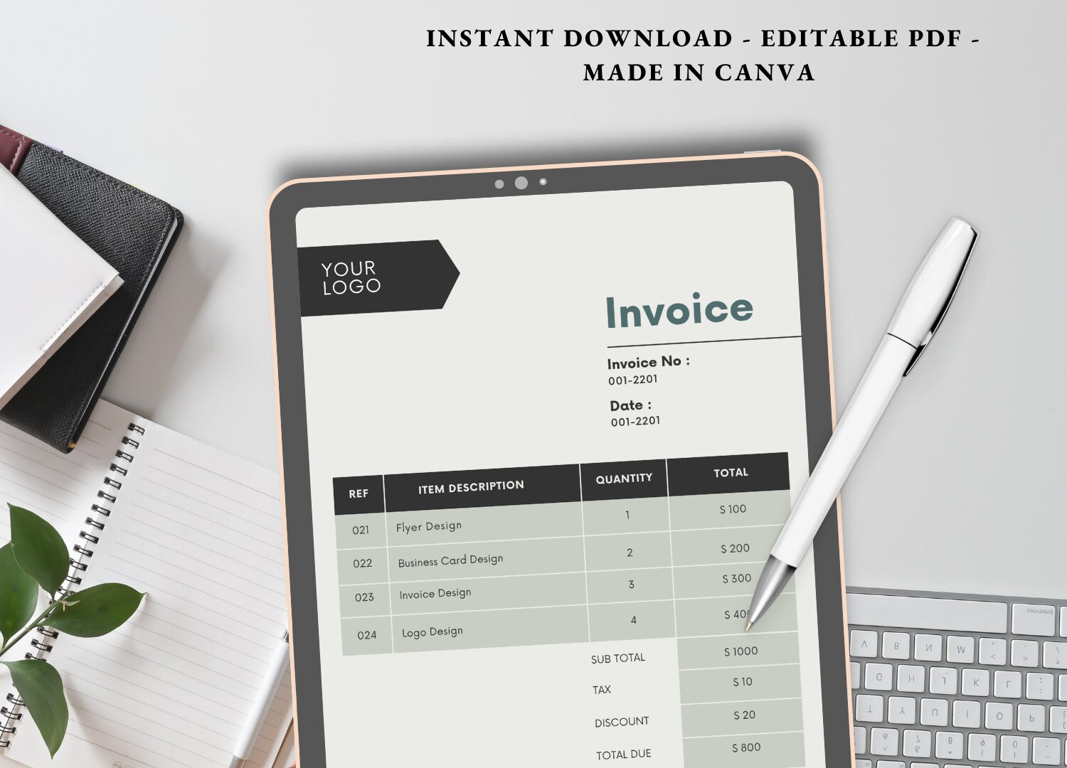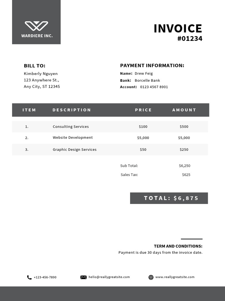 Grey Invoice Template | Edit in Canva | PDF Invoice | Small Business ...