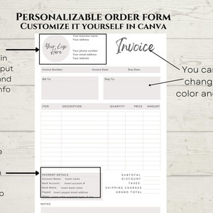 Gray Custom Invoice Form Template for Canva. Printable Crafters Invoice ...