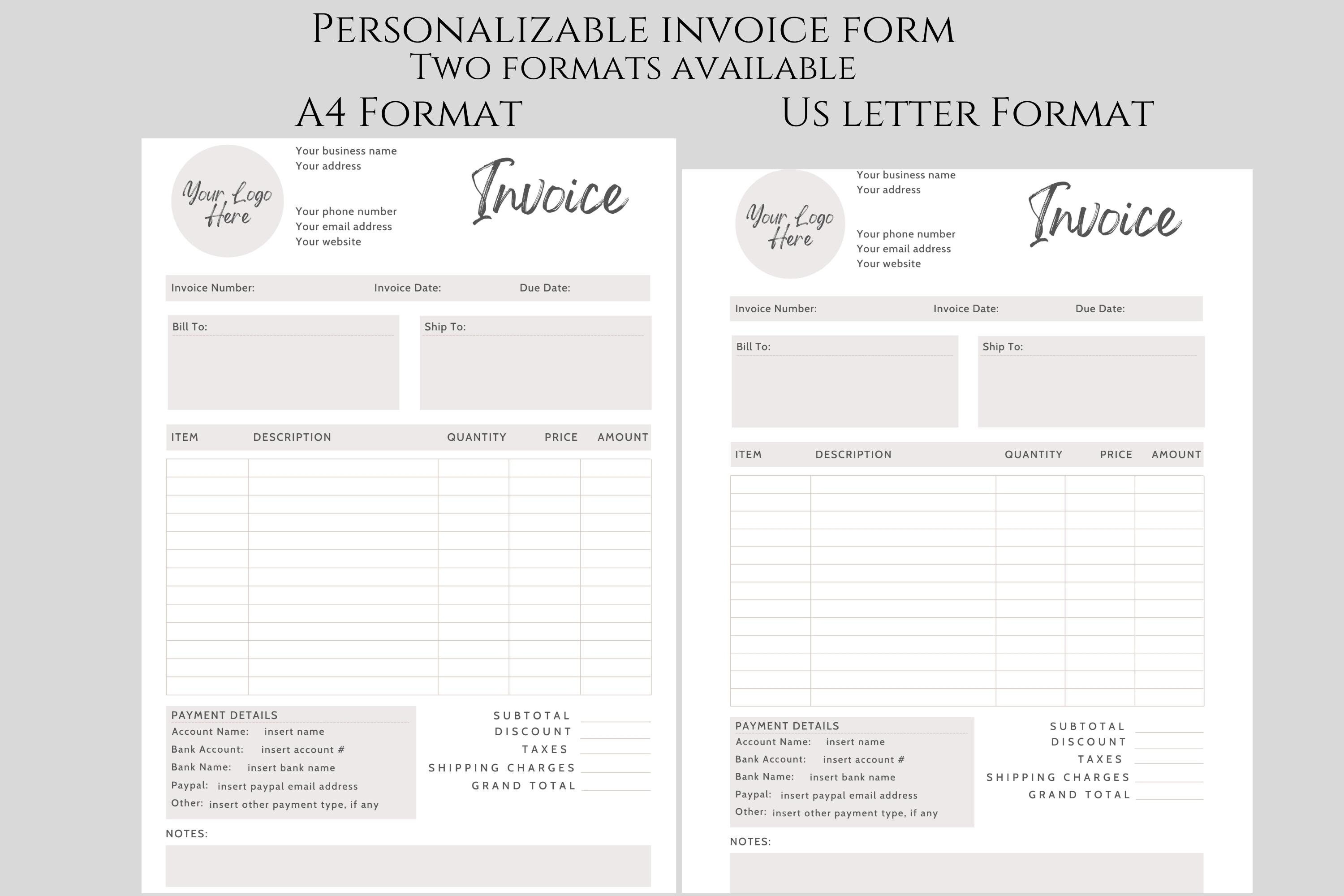 Gray Script Invoice Editable Template Printable Invoice Form - Etsy