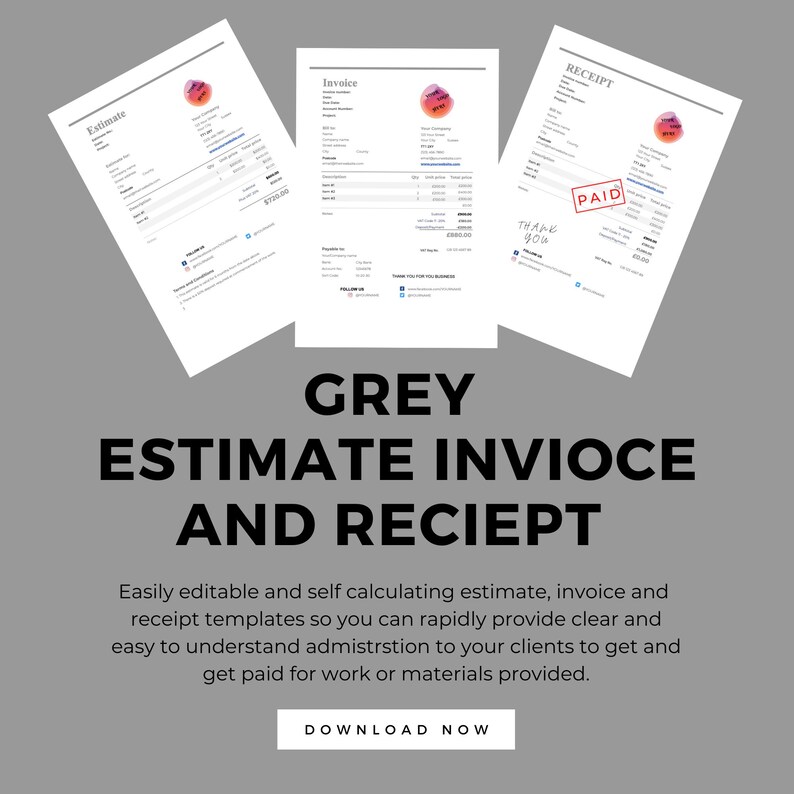Grey Business Estimate Invoice Receipt Bundle Template Google - Etsy