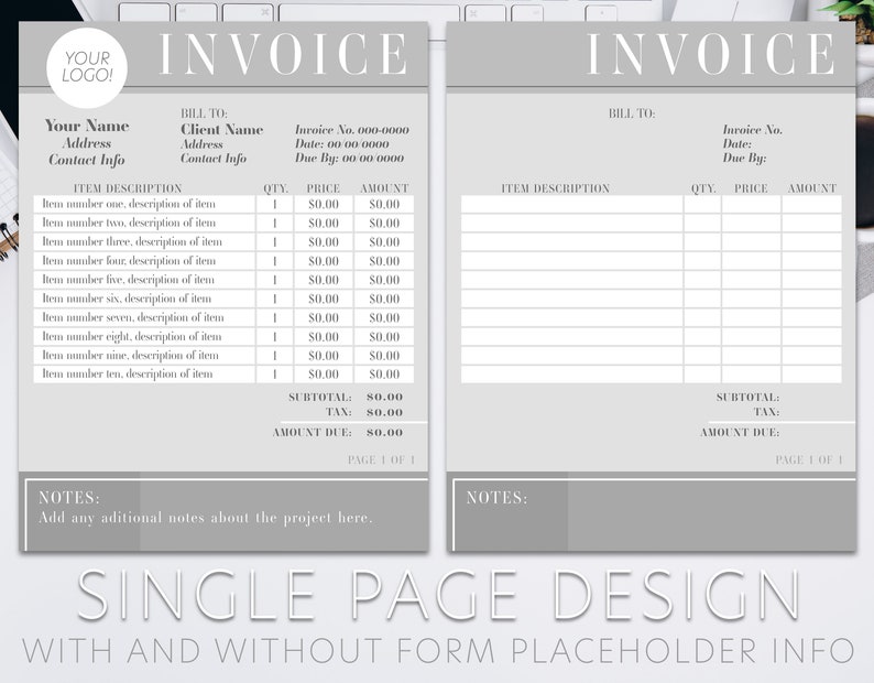 Professional Invoice Template - Black and Gray - Etsy