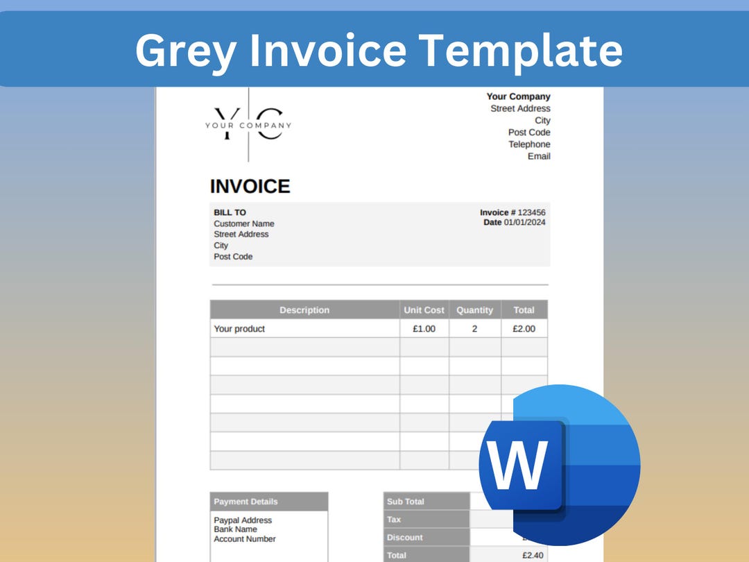 Gray Blue Invoice Template Word Receipt Template Invoice - Etsy