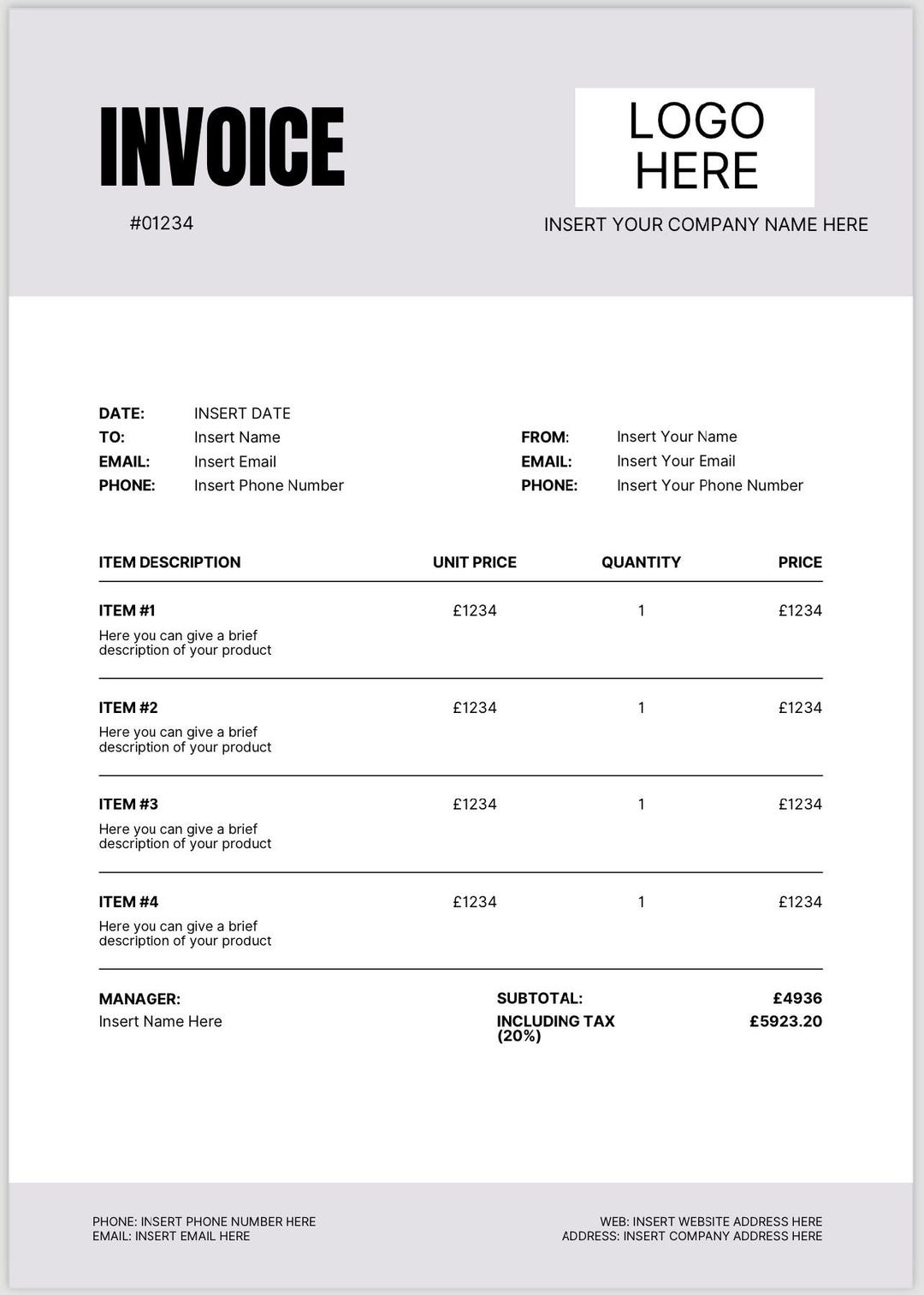 Grey Heading Fully Customisable Invoice Minimalistic Personal Business ...