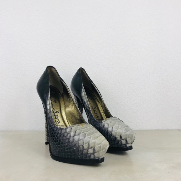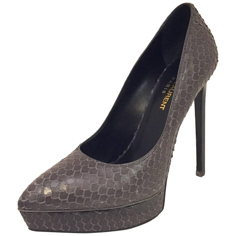 Serpentine Saint Laurent Grey Python Janis Platform Pumps For Sale at ...