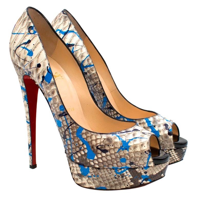 Christian Louboutin Blue and Grey Python Platform Pumps - Size EU 39.5 ...