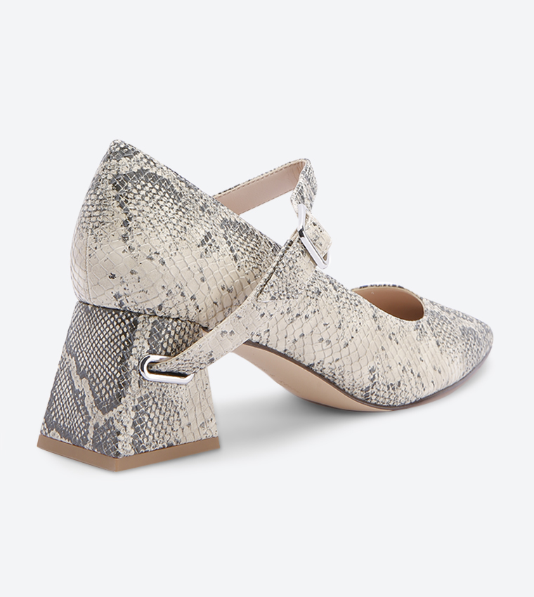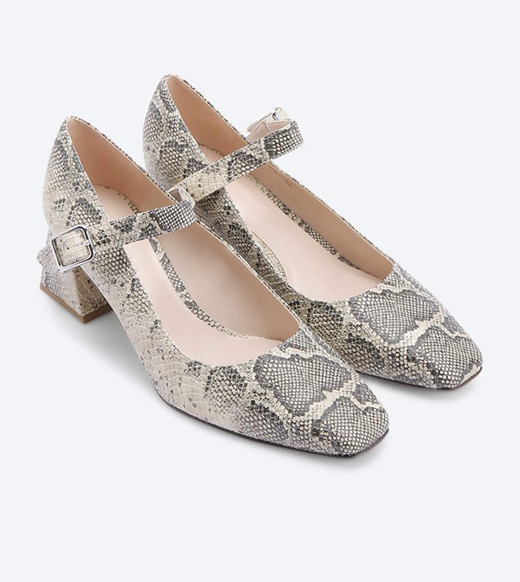 Buy Charles & Keith Snake Print Flare Block Heel Mary Jane Pumps Grey ...