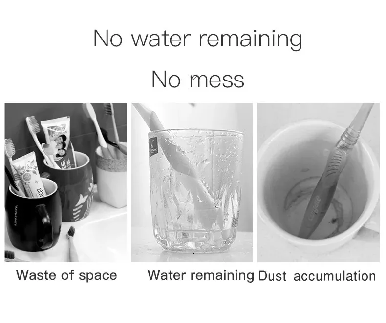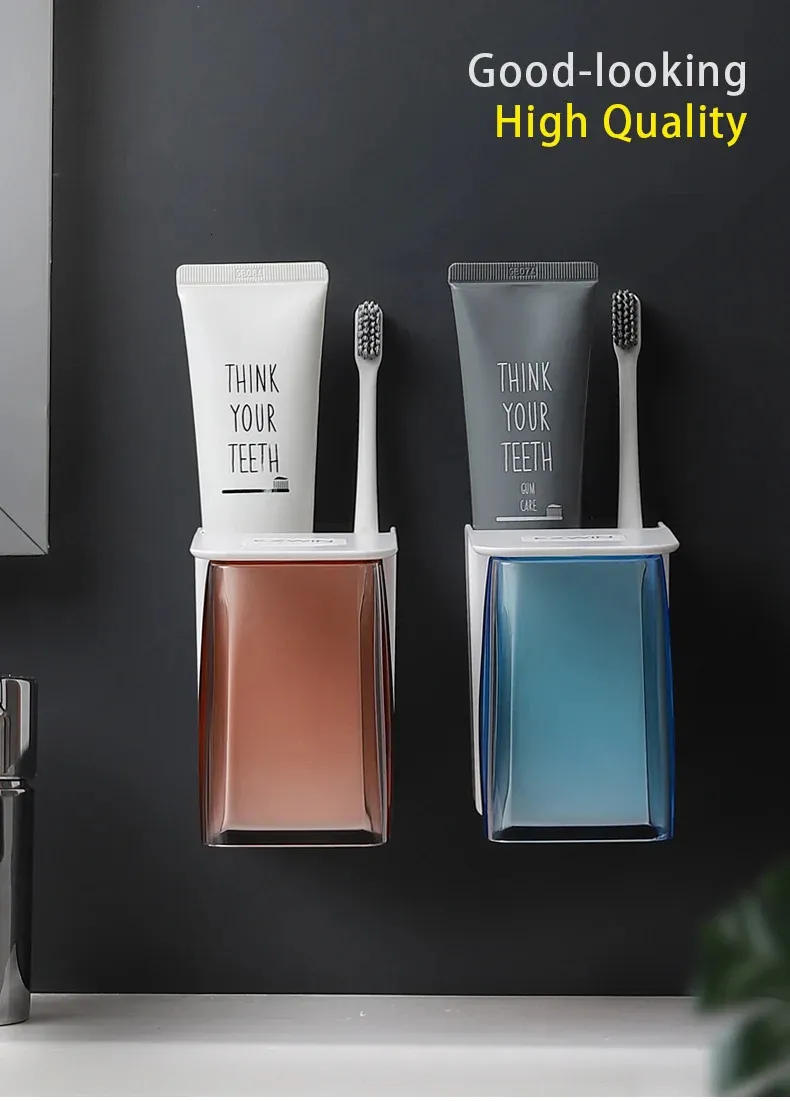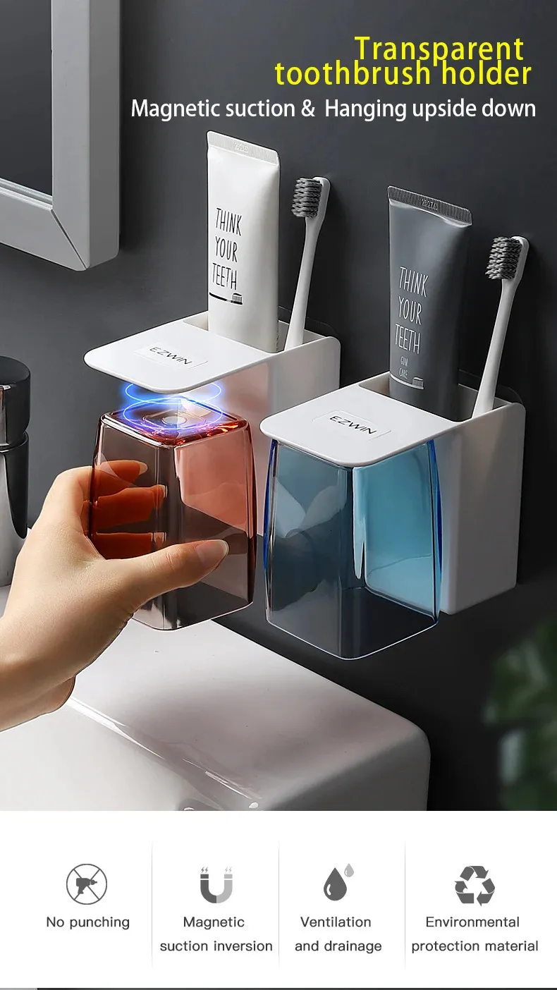 Wall-Mounted Toothbrush Holder Set - Magnetic Cup, Draining Design ...