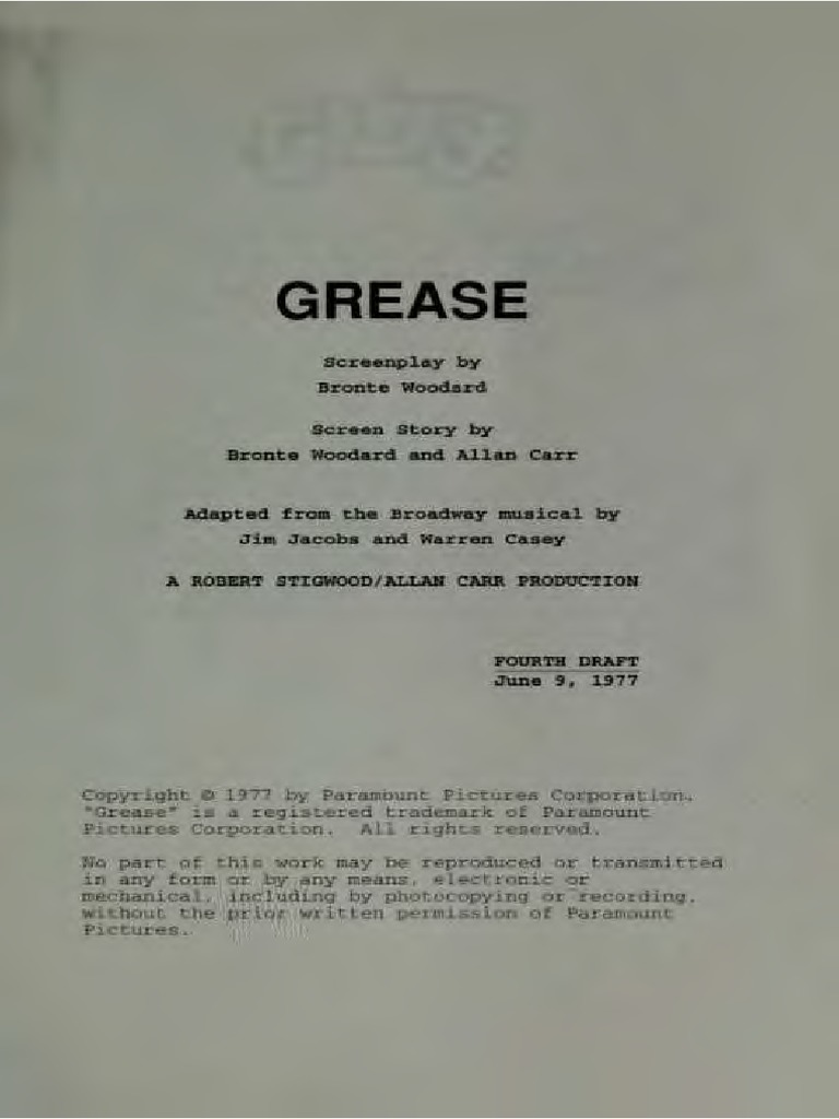 GREASE (1978) Fourth draft film script dated Jun. 9, 1977 - WalterFilm