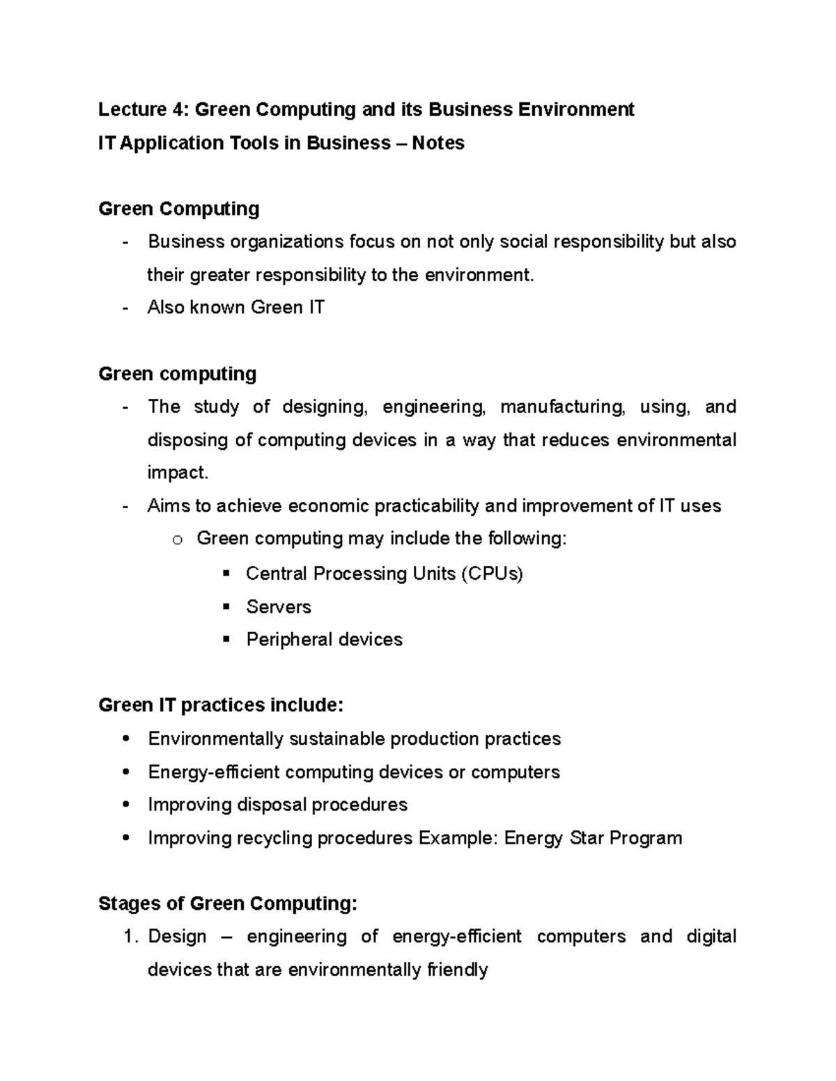 Green Computing in Business Notes - NOTES Green Computing in Business ...