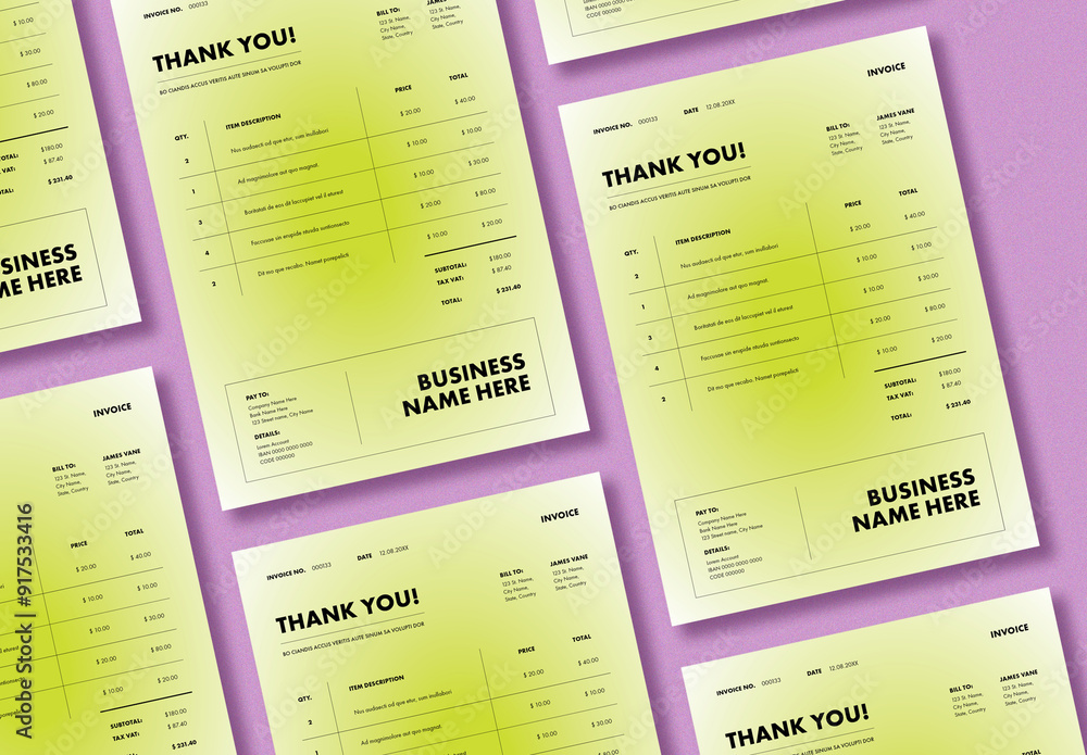 Gradient Invoice Design Template Stock Template | Adobe Stock