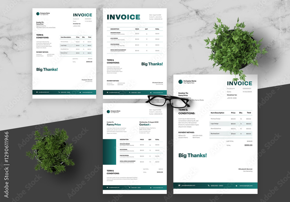 Invoice Layout with Green Gradient Stock Template | Adobe Stock