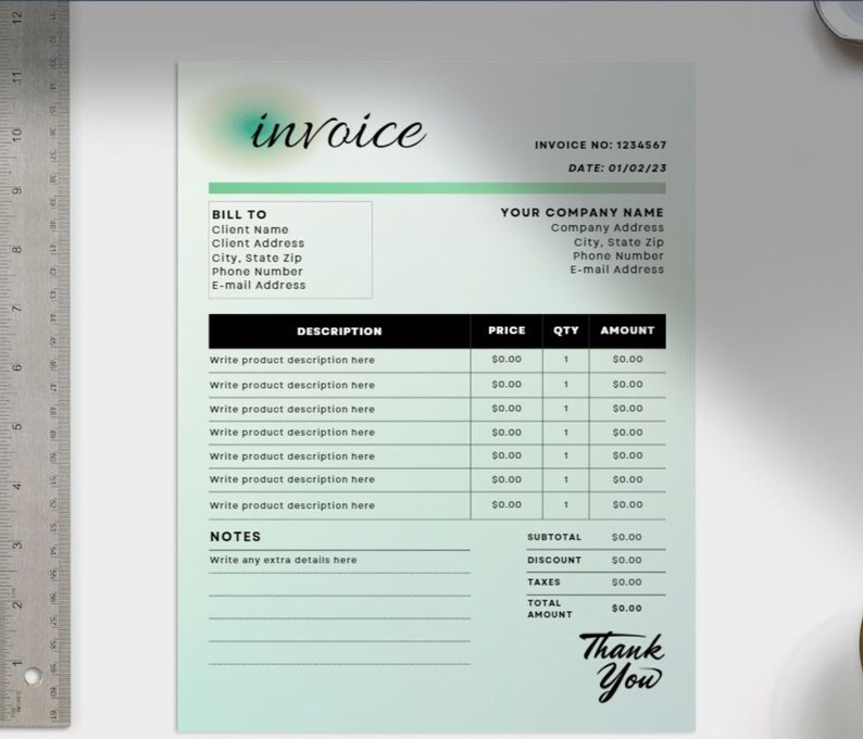 Editable Invoice Template Green Gradient Invoice Template, Customizable ...