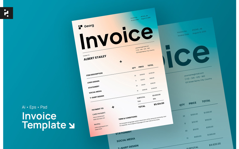 Modern Gradient Invoice, Print Templates | GraphicRiver