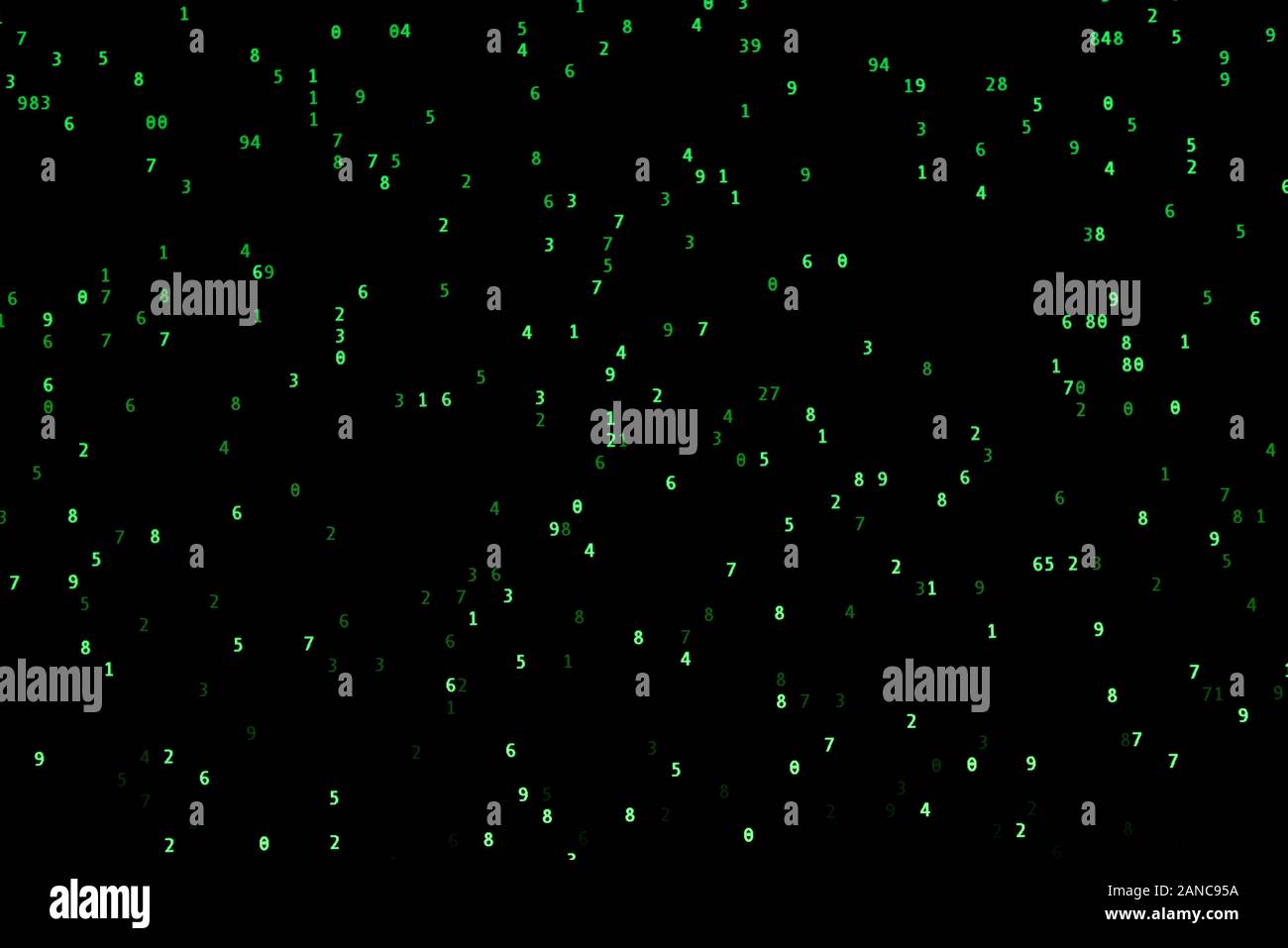 background of many green numbers from 0 to 9 on a computer display ...