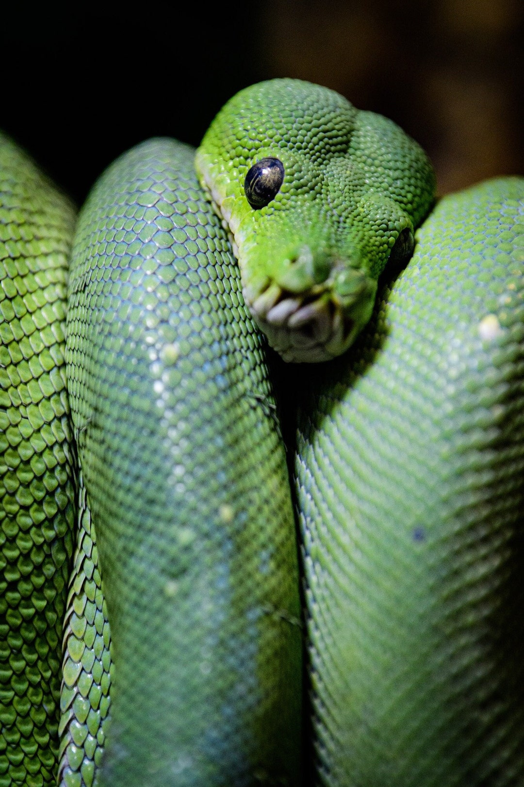 Green Tree Python Coiled on Dark Branch Free Stock Photo | FreeImages