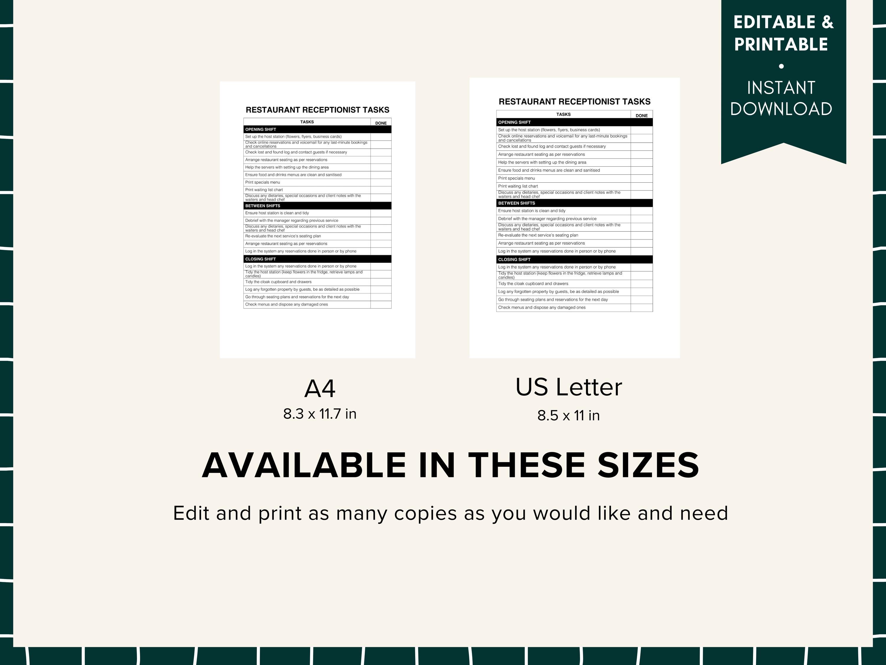 Restaurant Receptionist Daily Checklist, Maître D Duties, Restaurant ...