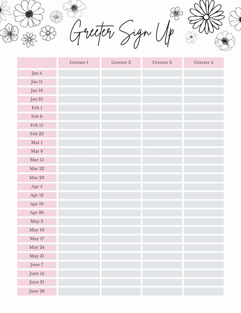 2026 Young Women Greeter Sign up Sheet! (printable and Customizable) - Etsy