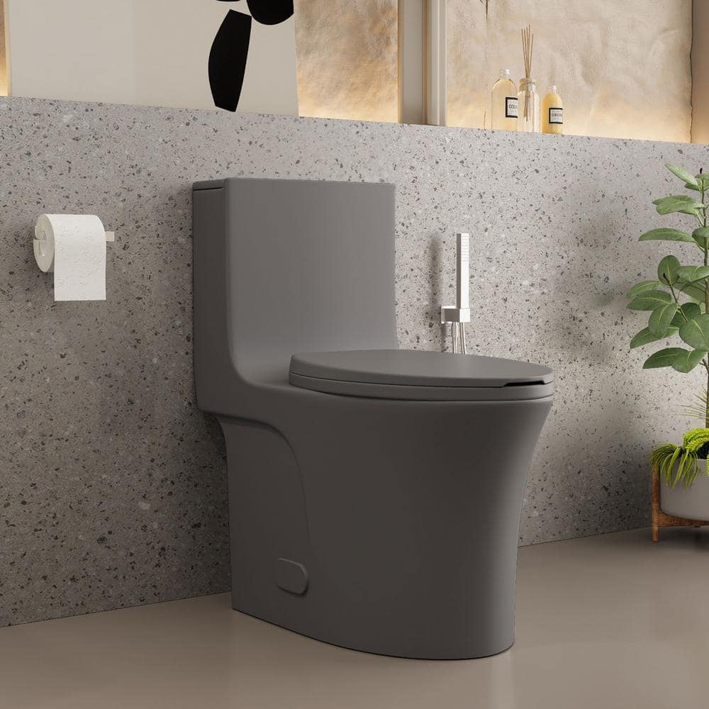 WinZo WZ5040GR Elongated Gray Toilet One Piece Dual Flush 1.1/1.6 GPF ...