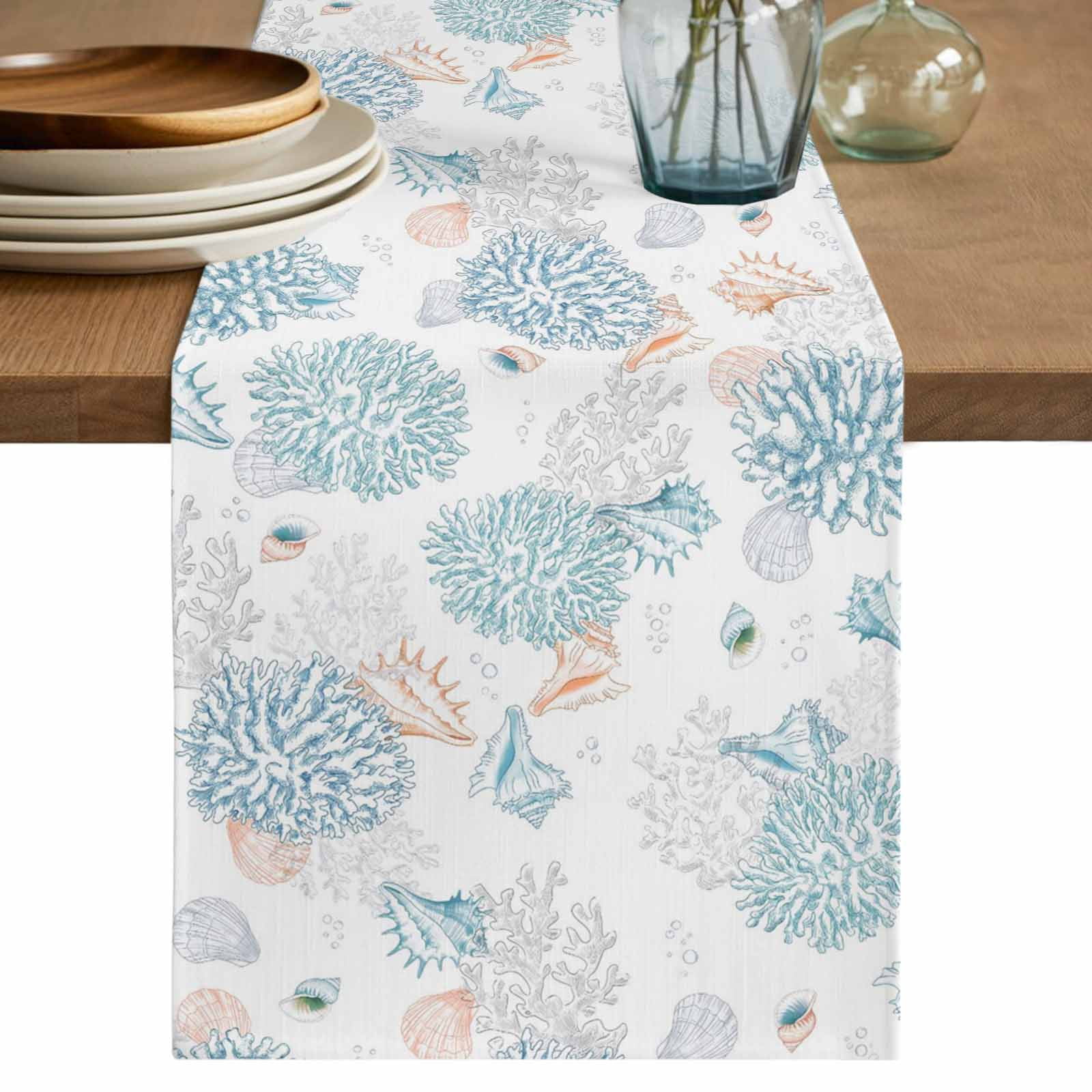 Blue Gray Coastal Table Runner 72 Inches, Summer Beach Ocean Coral ...