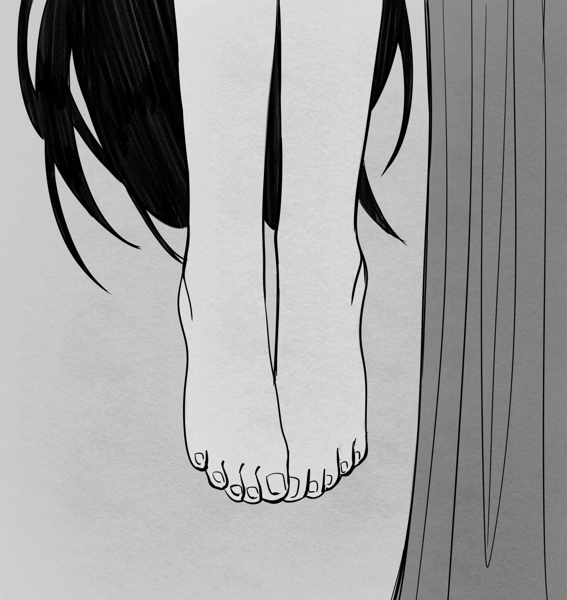 Safebooru - 1girl absurdly long hair barefoot commentary english ...