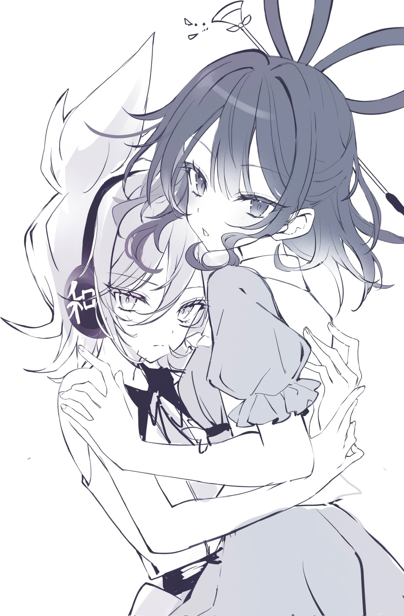 Safebooru - 2girls commentary request dress earmuffs from side ...