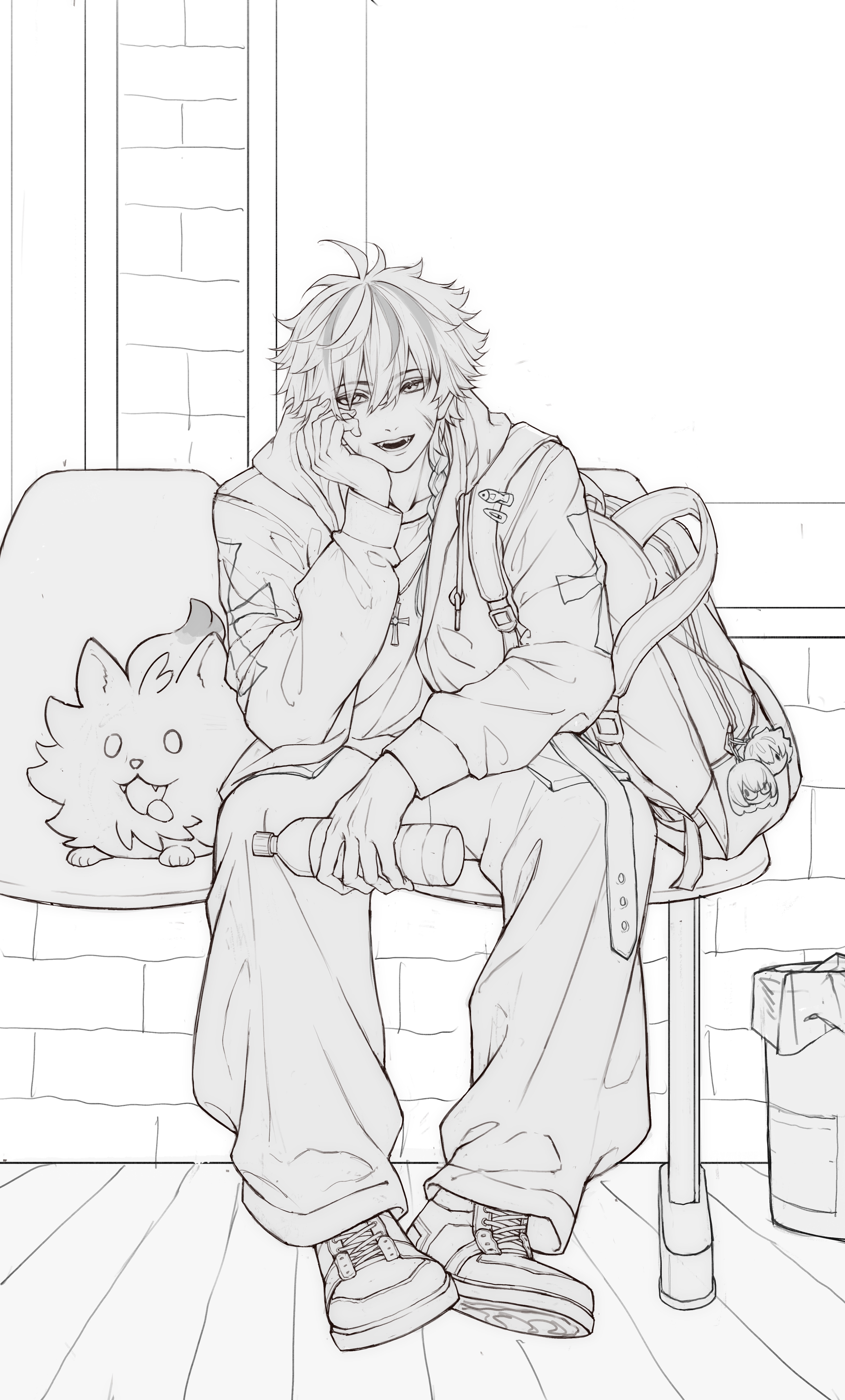 Safebooru - 1boy absurdres ahoge bag bottle braid braided ponytail ...