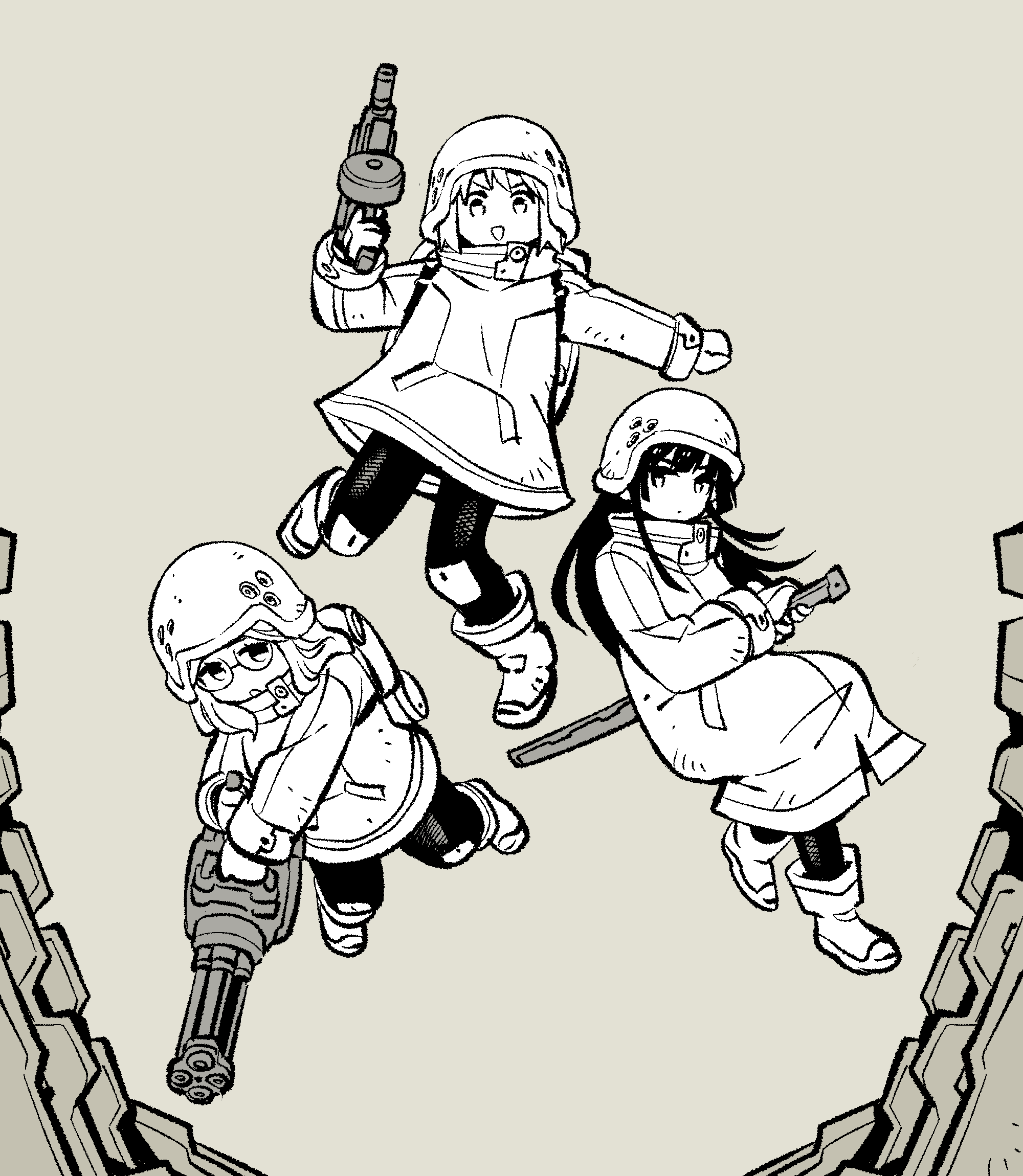 Safebooru - 3girls backpack bag boots coat commentary request copyright ...