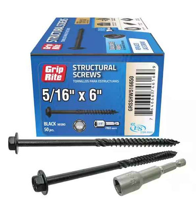 Grip Rite 5/16" x 6" Structural Screws, Hex Washer Head, Black (50/Box ...