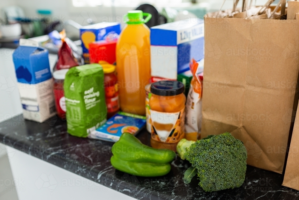 Image of grocery shopping on kitchen bench - rising cost of living ...