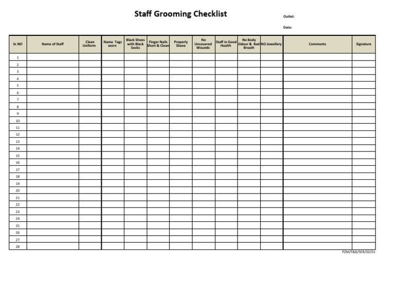 Staff Grooming Checklist | PDF
