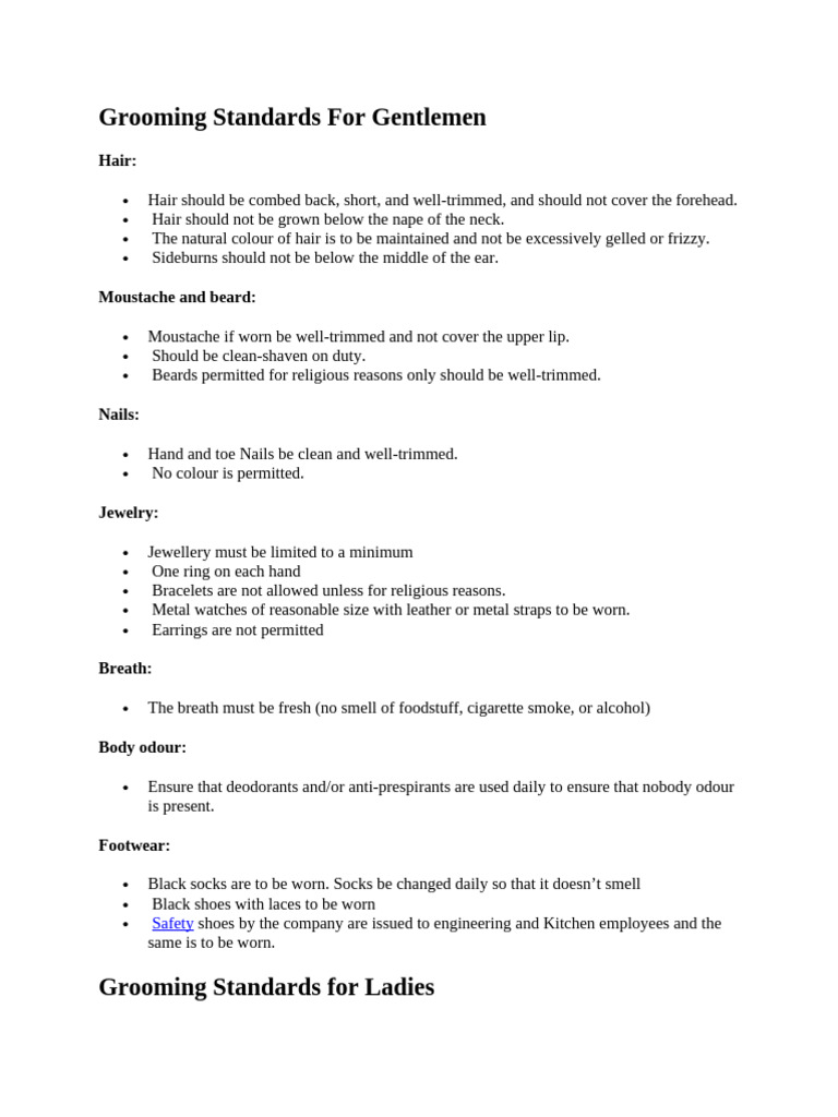 Grooming Standards For Gentlemen | PDF | Waiting Staff | Bartender