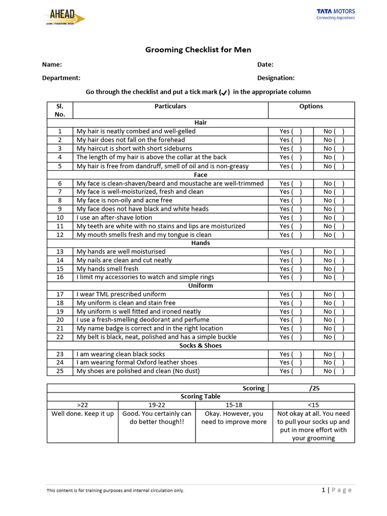 Grooming Checklist For Men | PDF | Human Appearance | Clothing