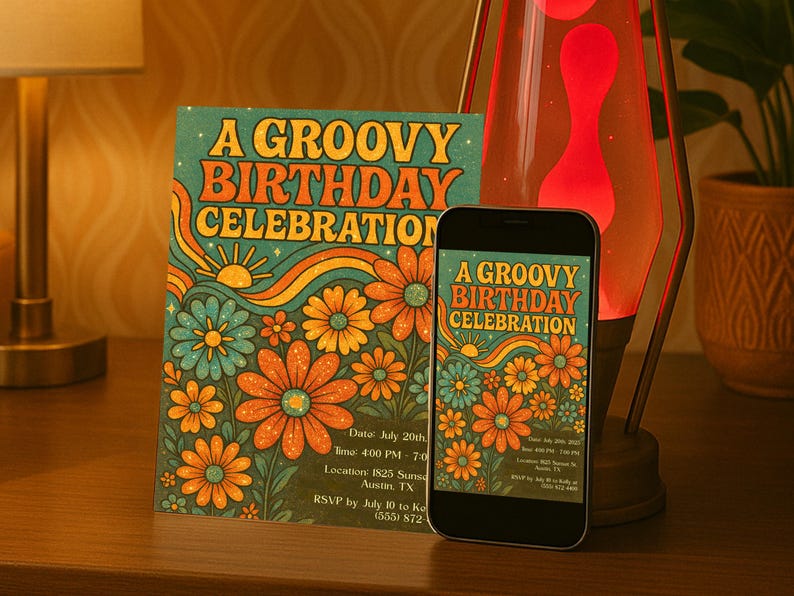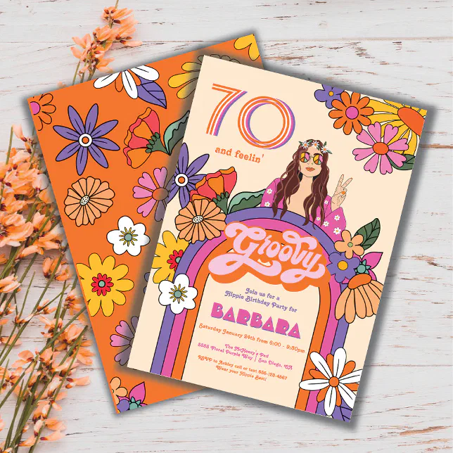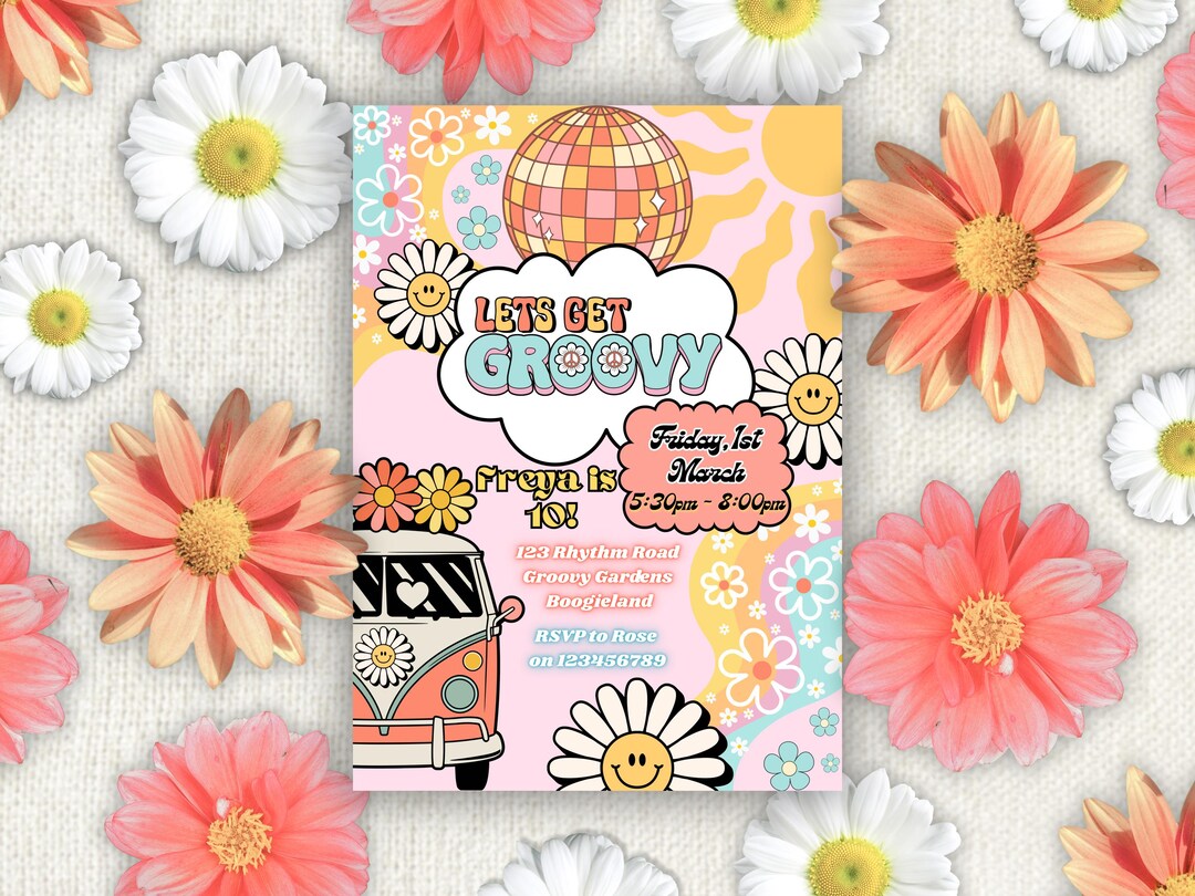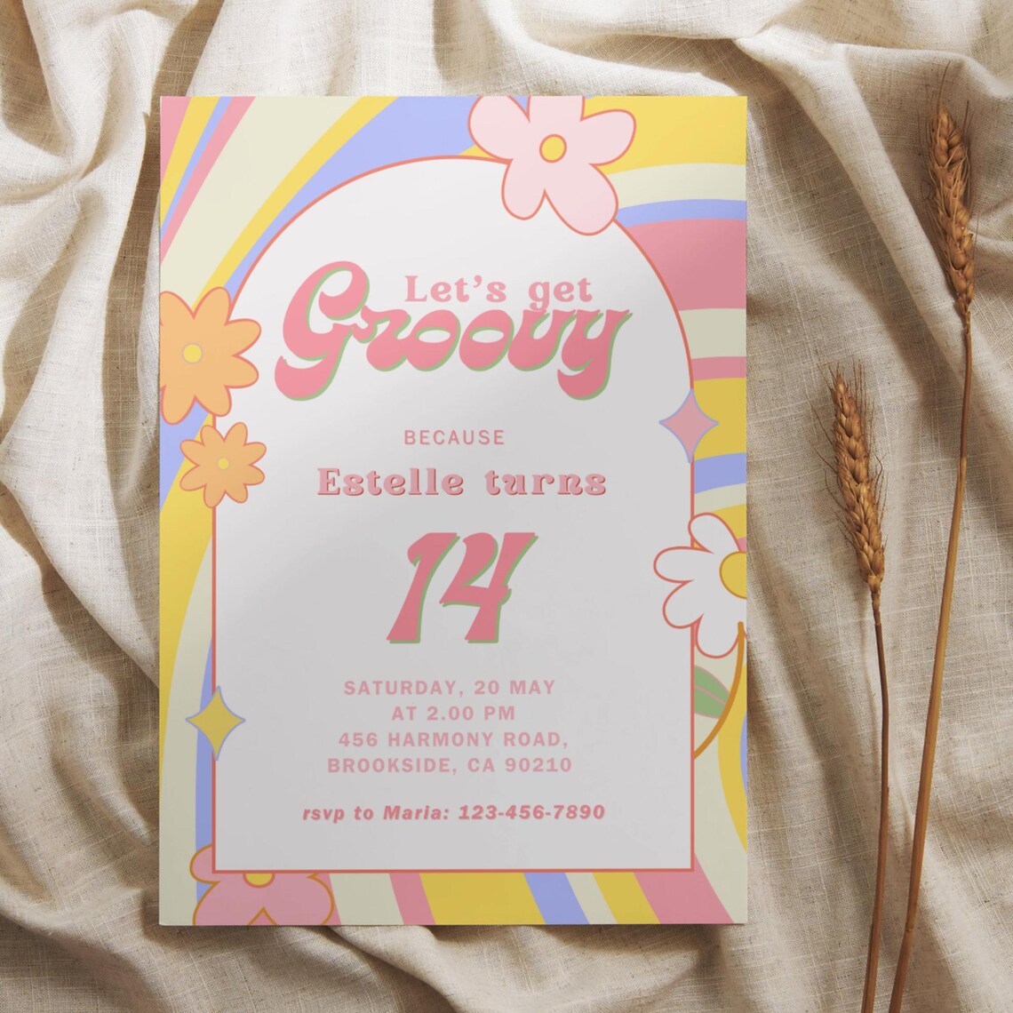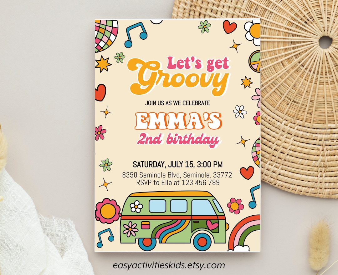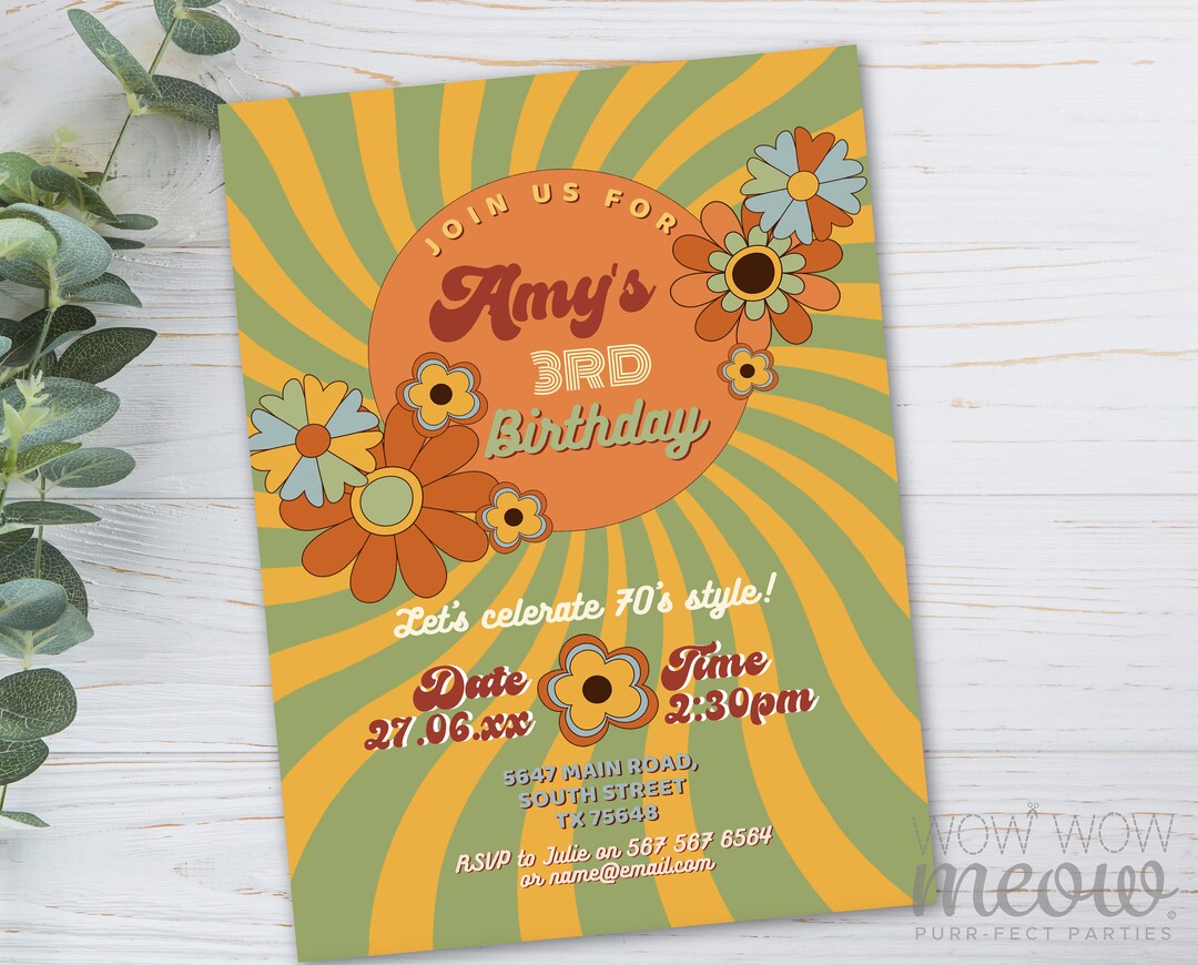 Groovy Birthday Invitation, Retro Birthday Invitation, Hippie Vibe 70s ...