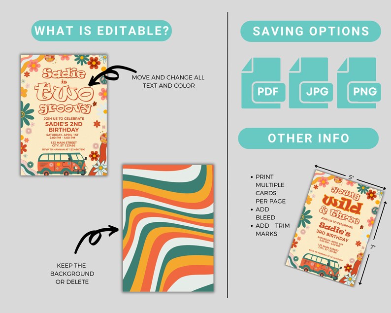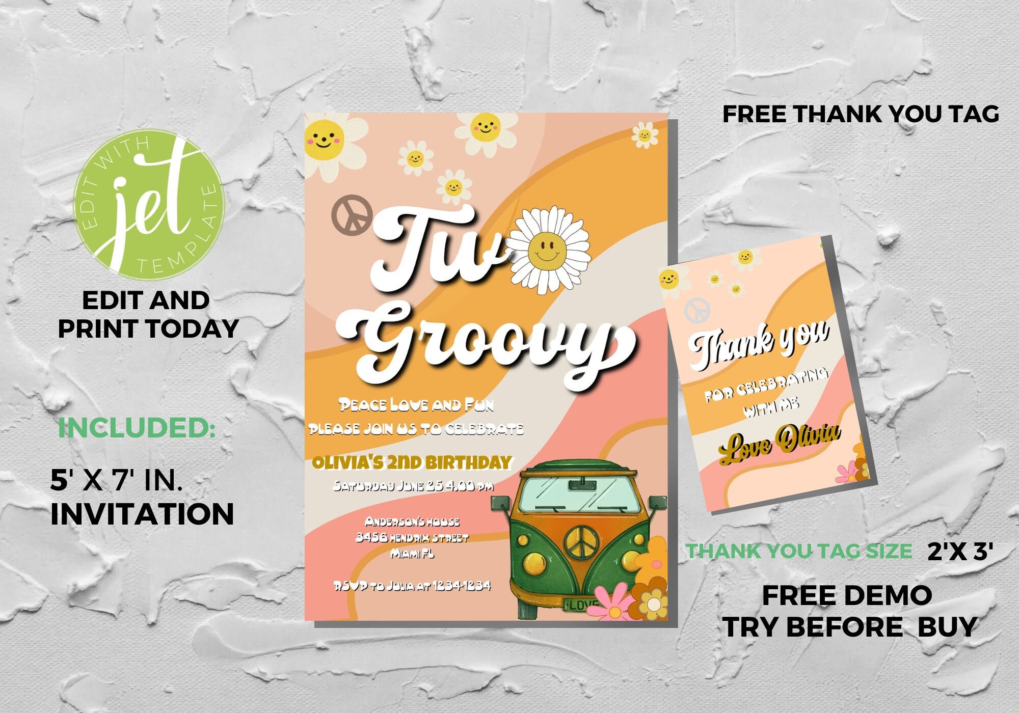 Two groovy birthday invitation 70s 2nd birthday party editable and ...