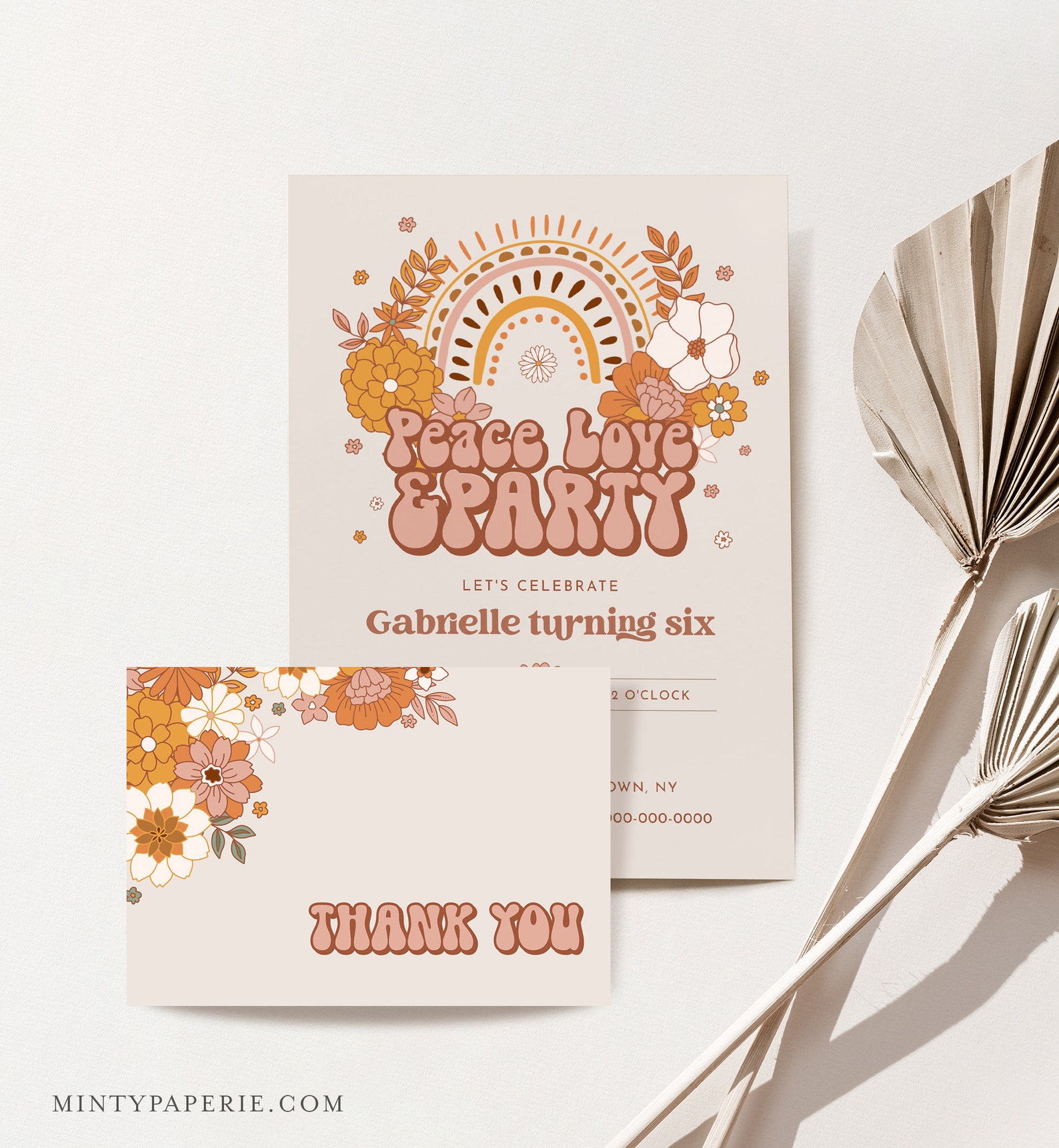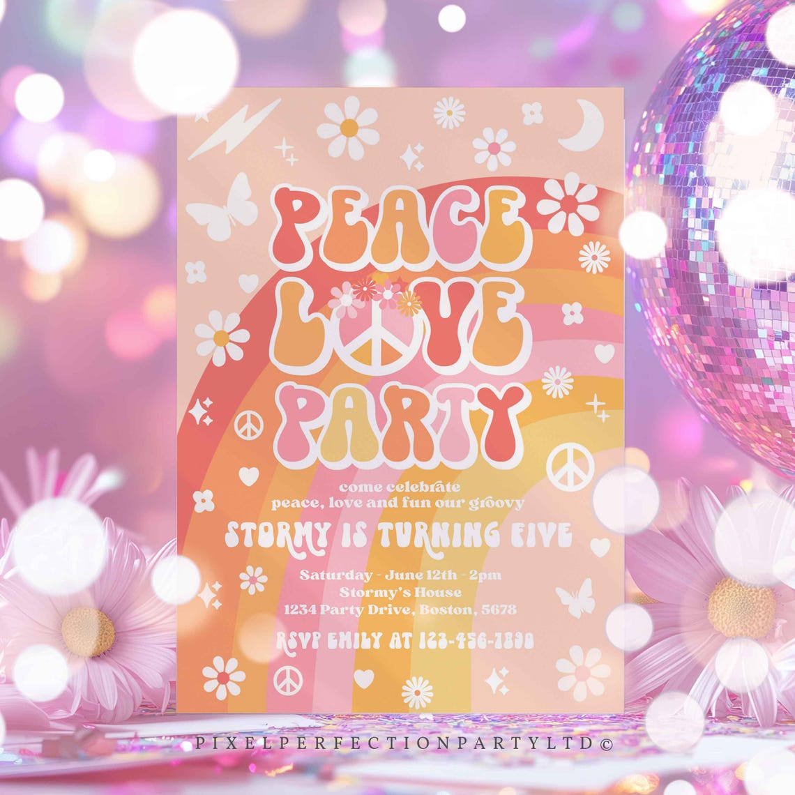 Editable Groovy Birthday Party Invitation Peace Love Party Hippie ...