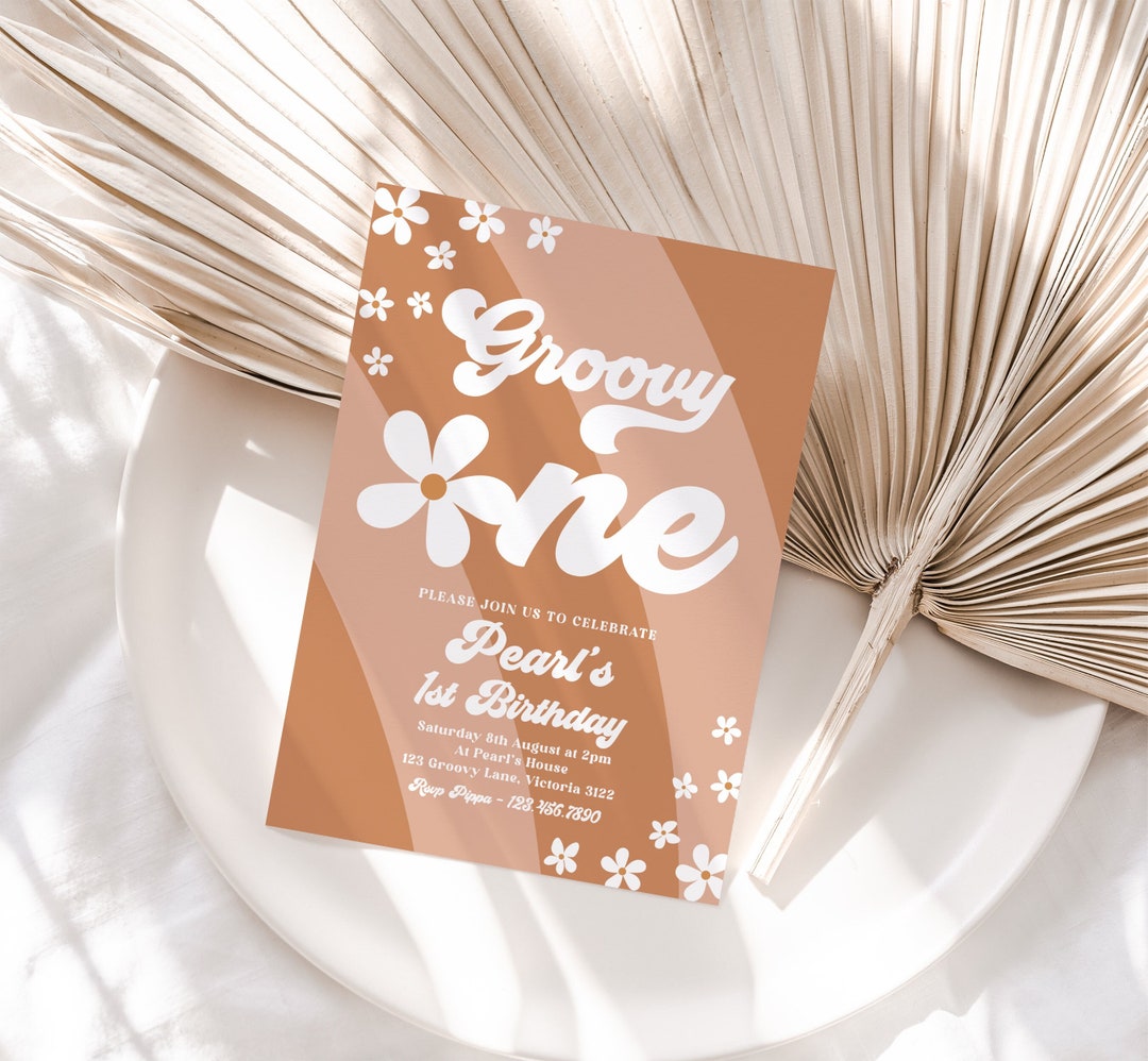 Groovy One Invitation, Editable Groovy Birthday Invitation Template ...