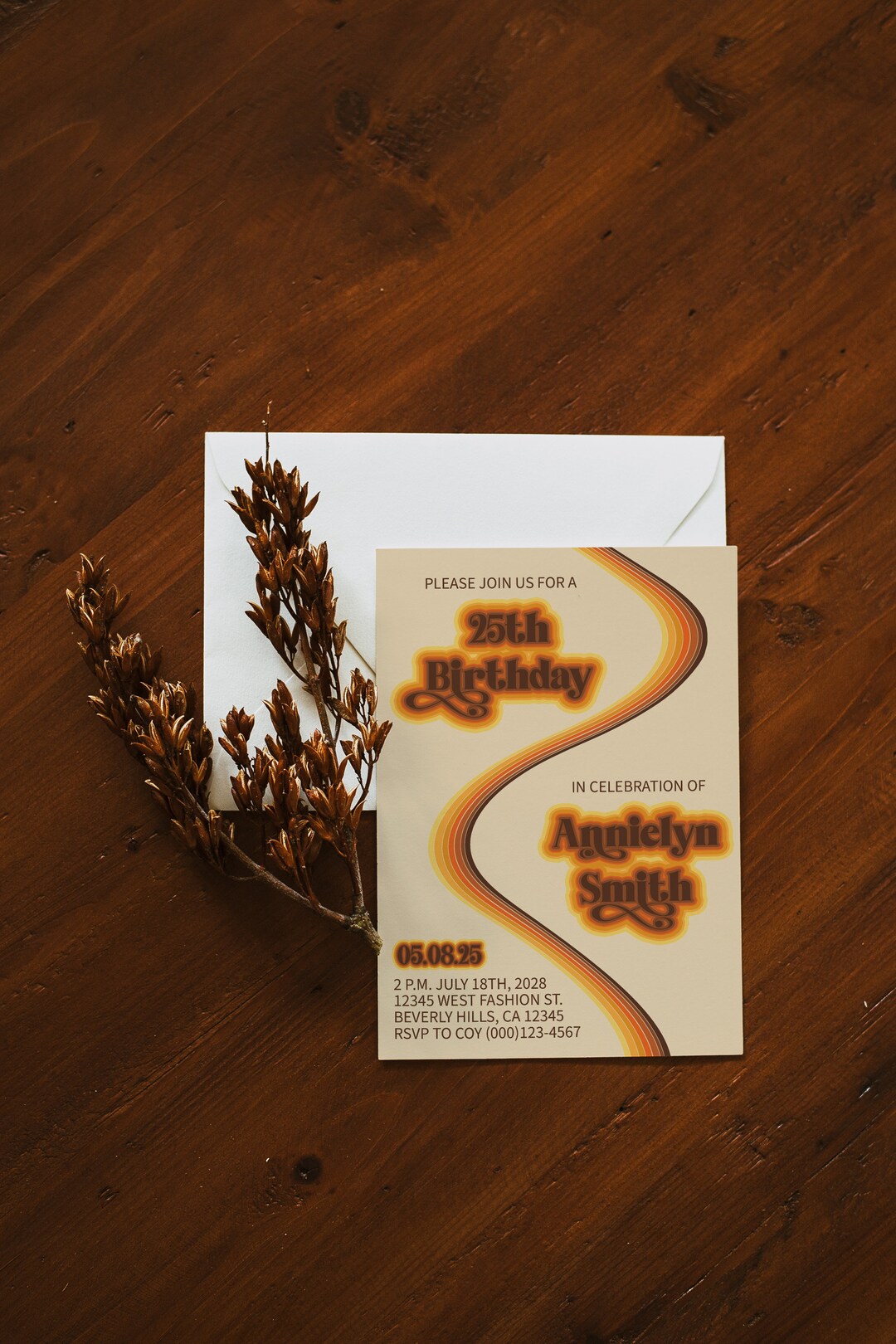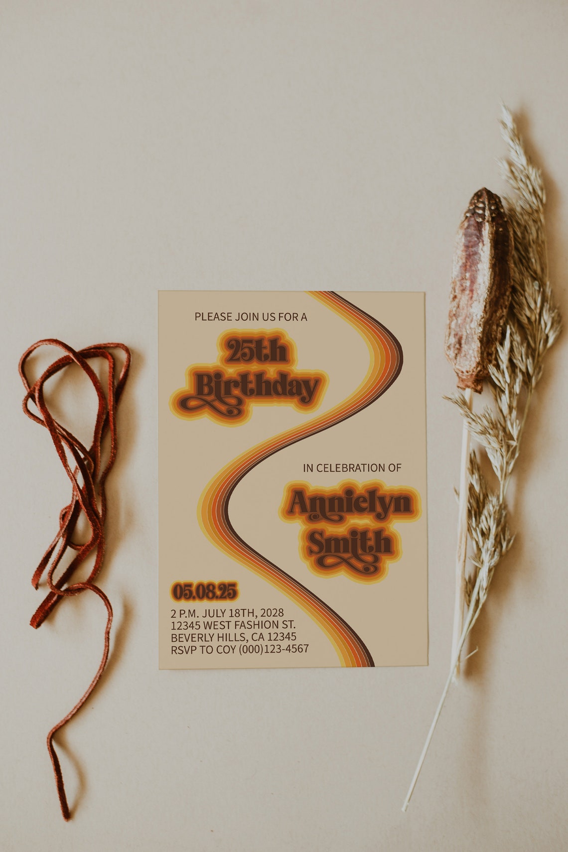 Retro Birthday Party Invitation, Groovy 70s Theme, Editable Template ...