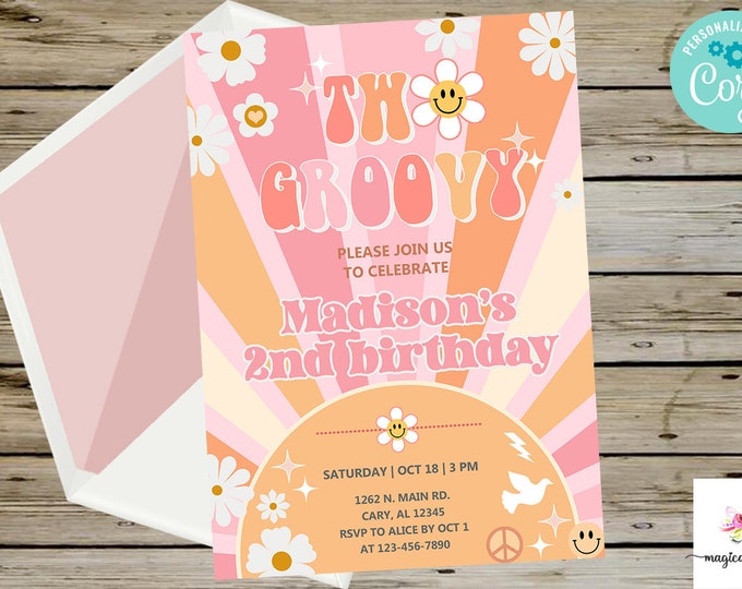 Editable TWO Groovy Invitation Groovy 2nd Birthday Party Daisy Groovy ...