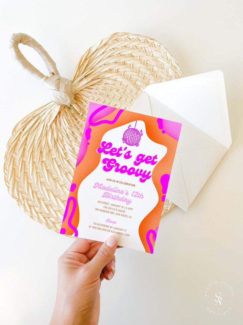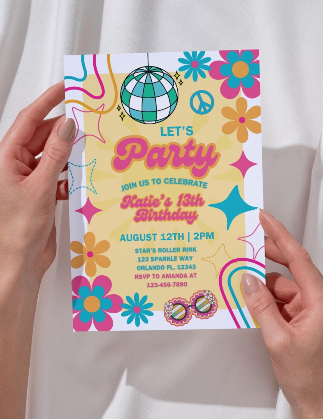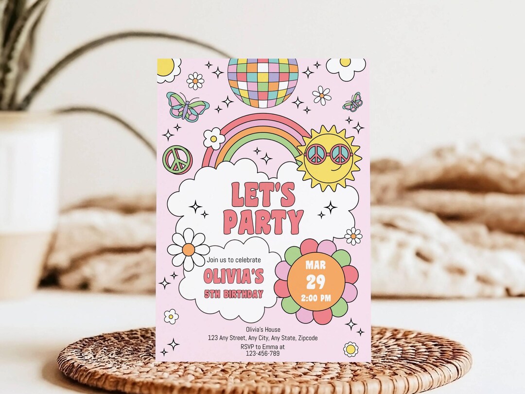 15 Retro Groovy Birthday Invitations Girl - 70s Theme Birthday Party ...