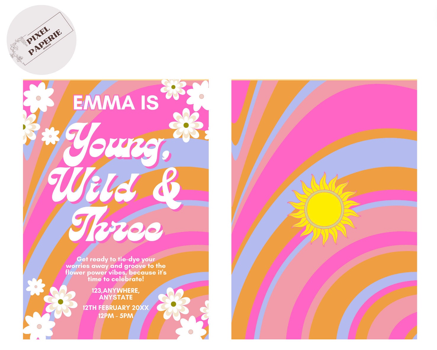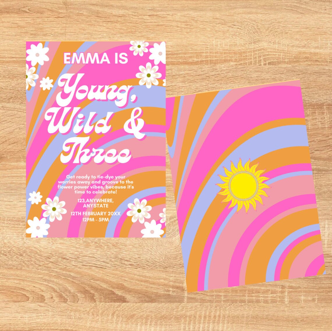 Editable Groovy One Hippie Birthday Invitation, Groovy Hippie Birthday ...