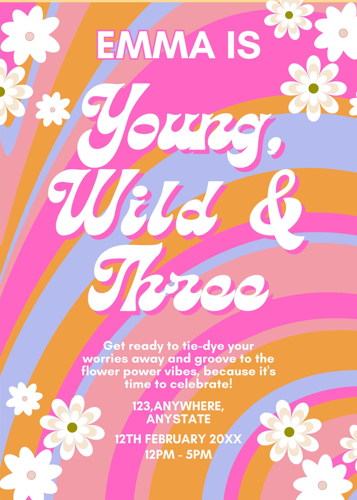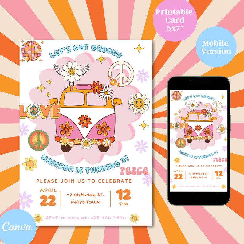 7 get groovy retro hippie canva birthday invitation templates – Artofit